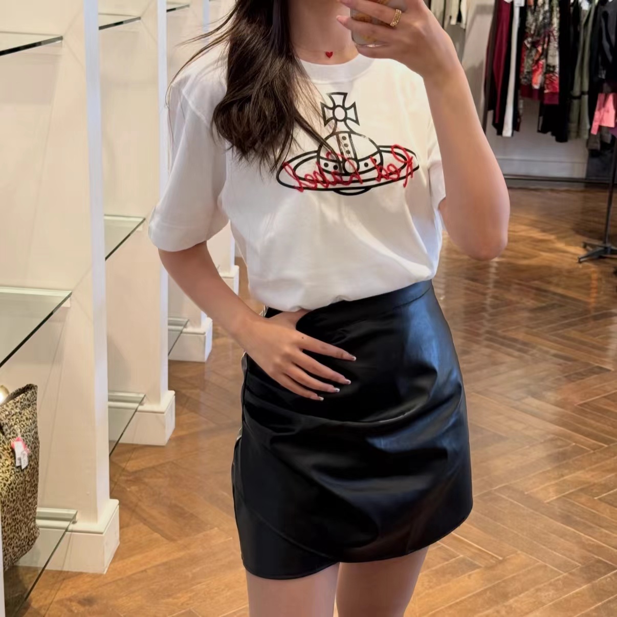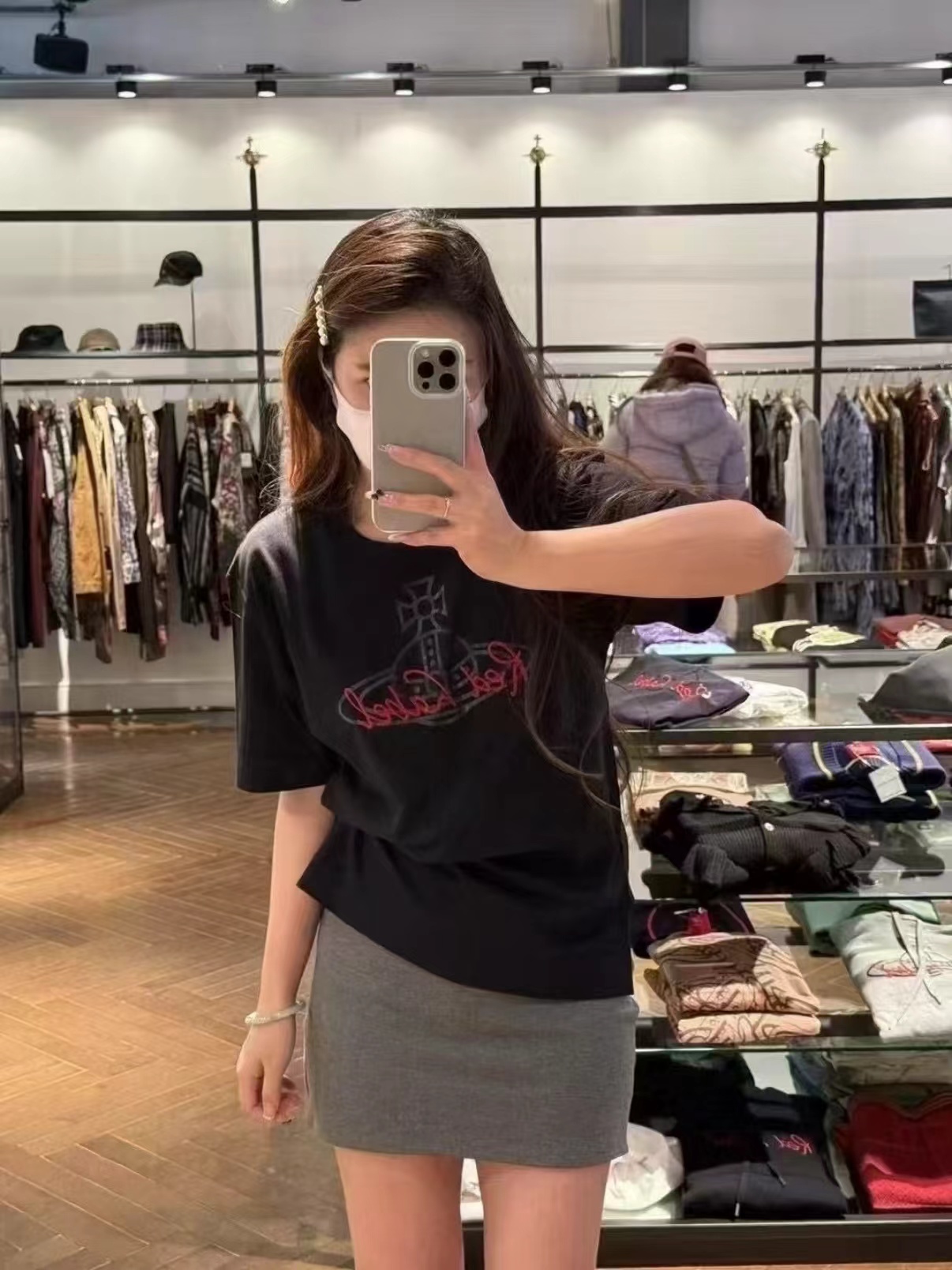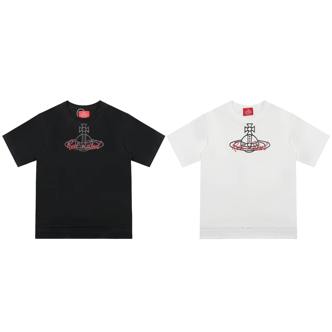 F031406春夏新品限定刺绣字母土星两边开叉前短后长短袖T恤