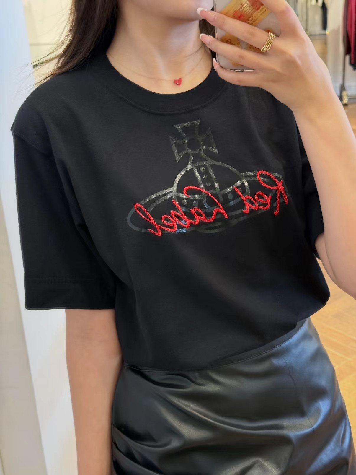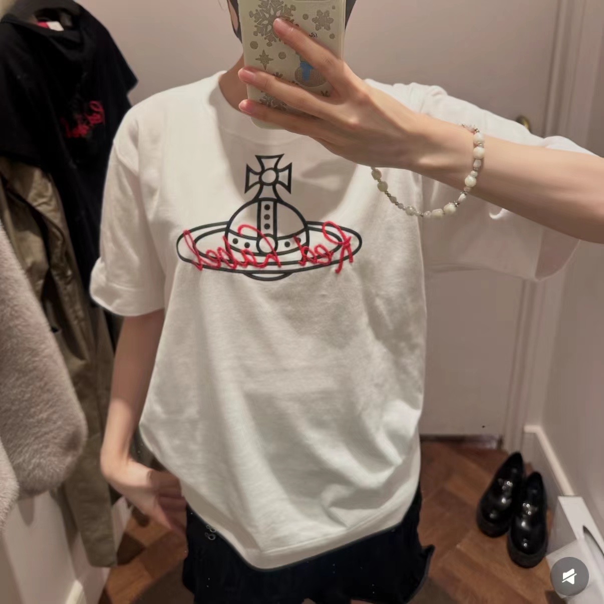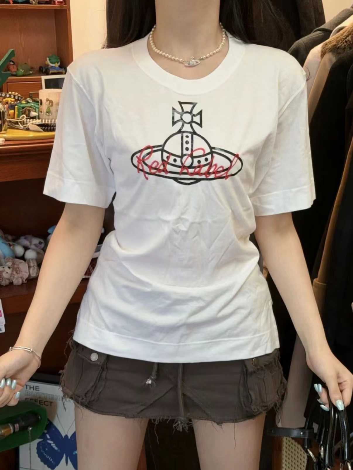 F031406春夏新品限定刺绣字母土星两边开叉前短后长短袖T恤