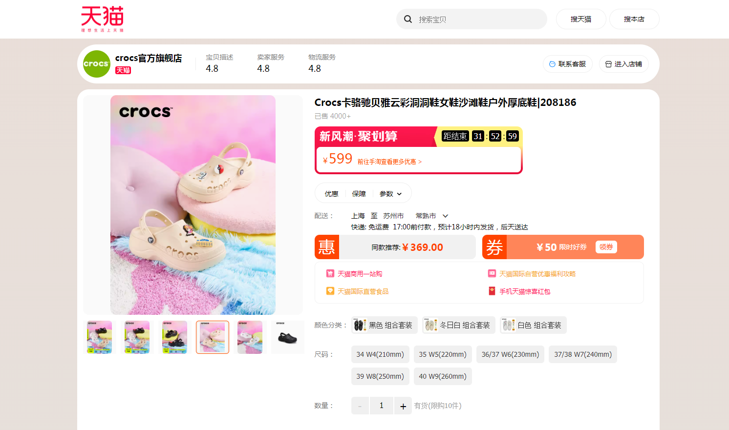 侧面好帅!!拍照好看の云彩洞洞鞋。软支撑裸足脚感凉鞋A042688