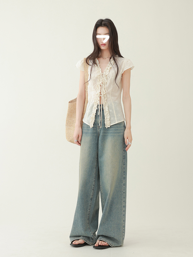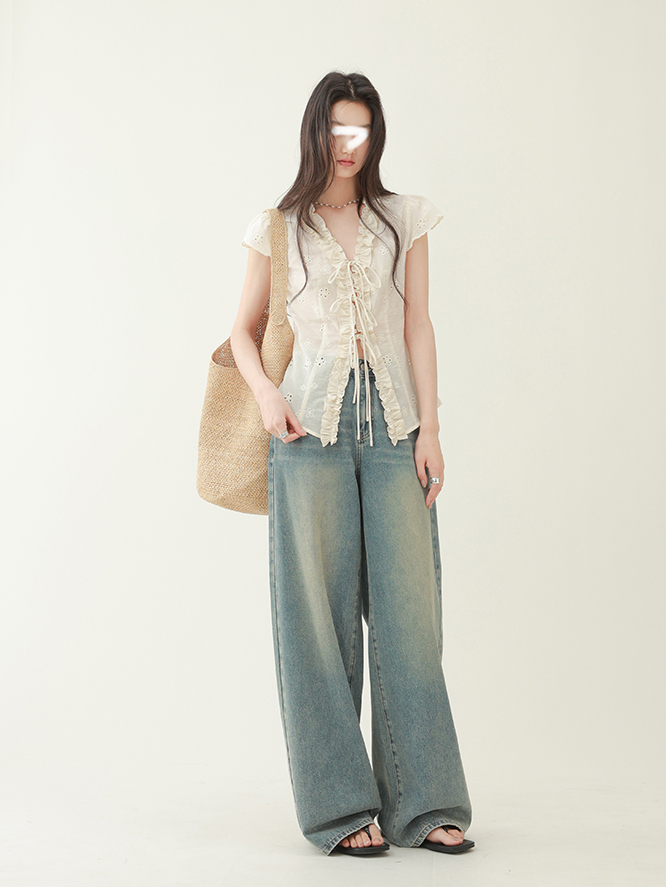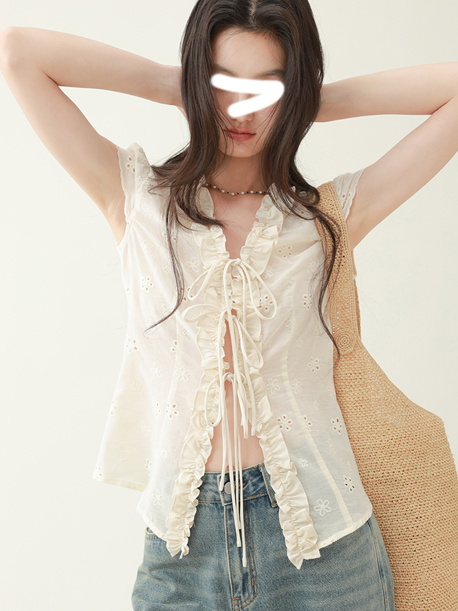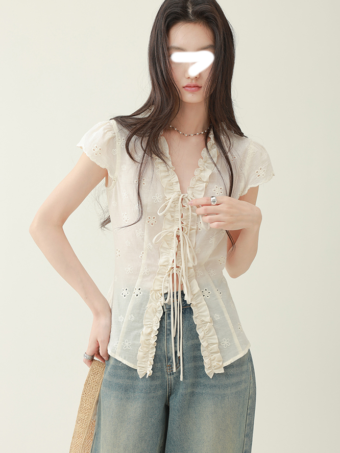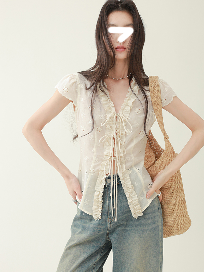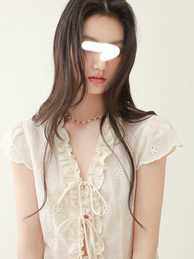 裁缝学苑AQ514复古系带荷叶边小飞袖衬衫纸样女装V领上衣样板图纸