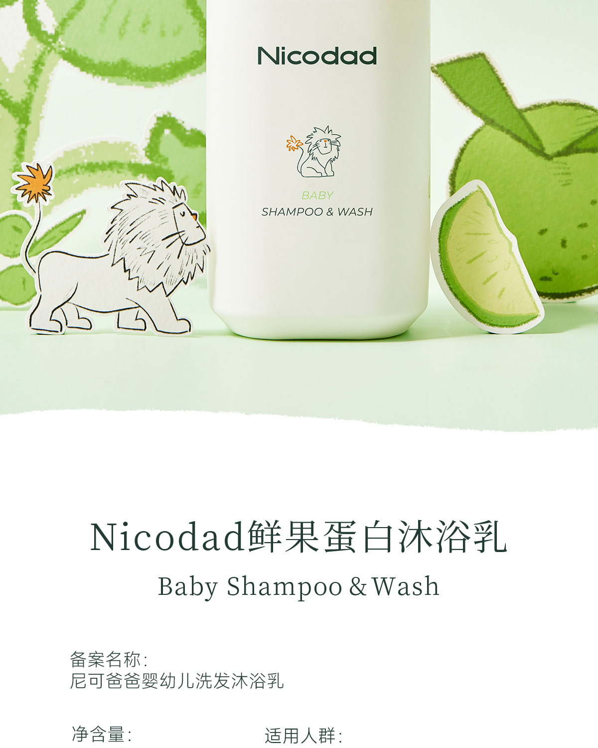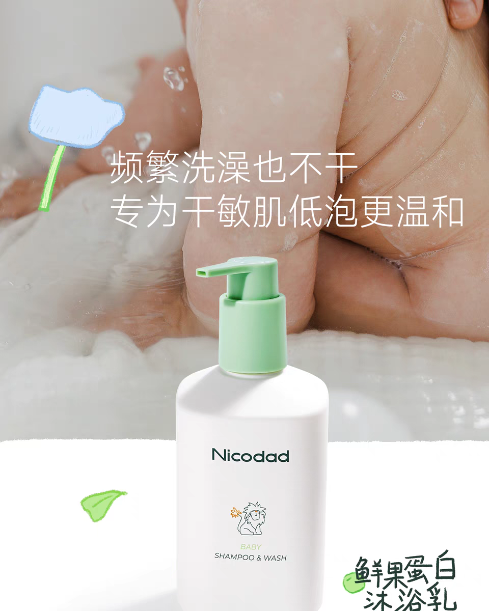 【春上新】9楼母婴生活馆 Nicodad尼可爸爸洗发沐浴乳鲜果蛋白洗发沐浴乳新生婴儿宝宝沐浴露二合一 活动价:118元
