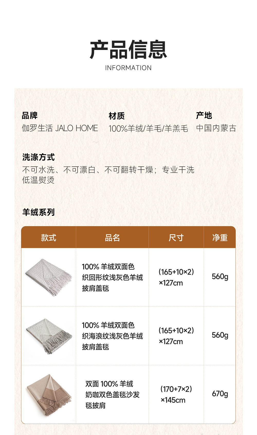 伽罗 JALO 羊绒/羊毛毯披肩(3个工作日内发货)