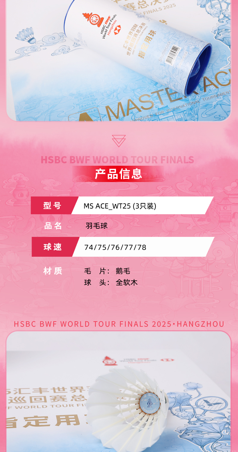 威克多 羽毛球 2025羽联世界巡回总决赛系列 MS_ACE_WT25(3只装/筒 x10筒盒装)
