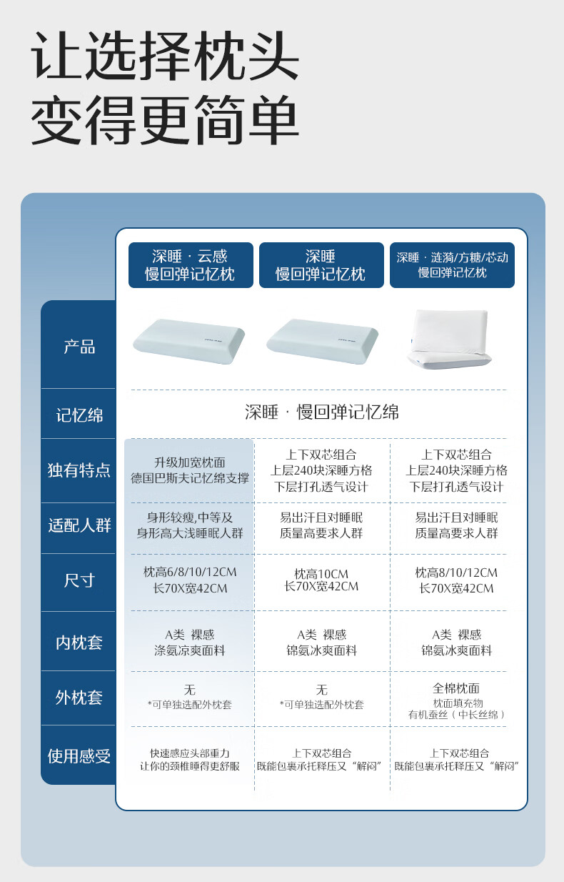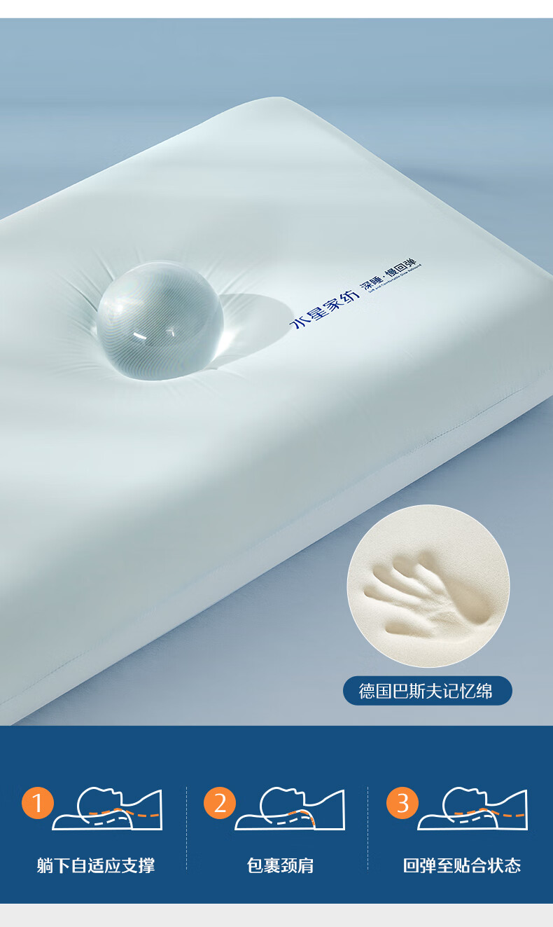 水星家纺深睡枕头颈椎枕成人睡觉枕芯A类护颈养护记忆棉枕
