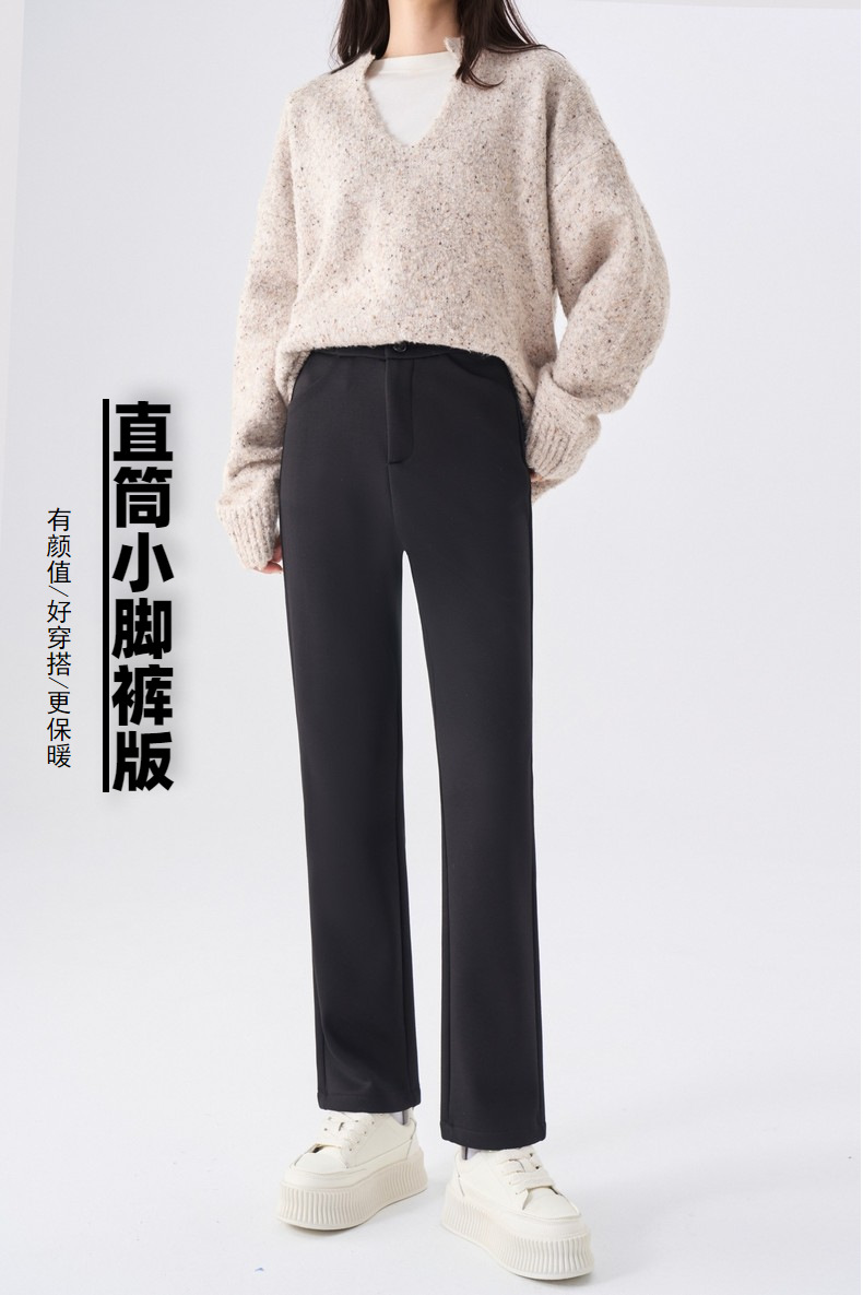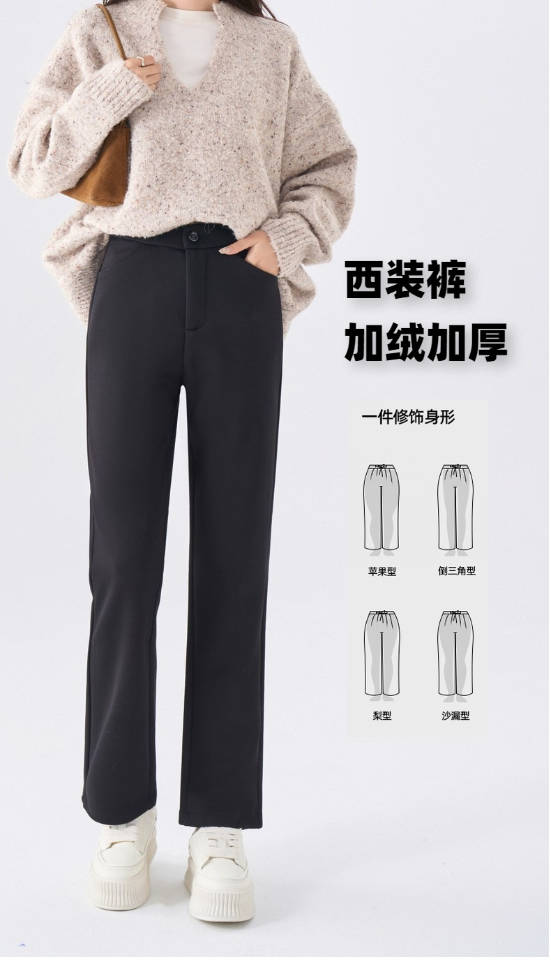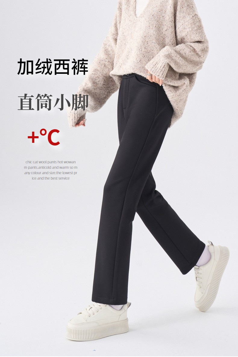 【加绒烟管裤】2025高腰西装裤女通勤冬加绒加厚直筒拉链休闲裤子!
