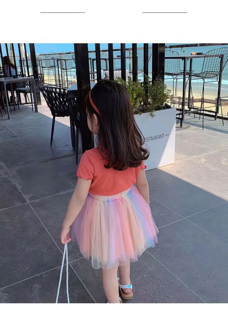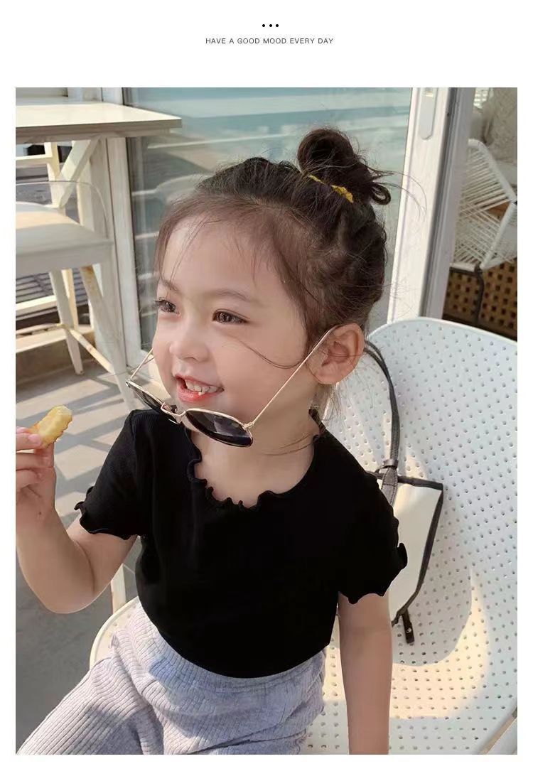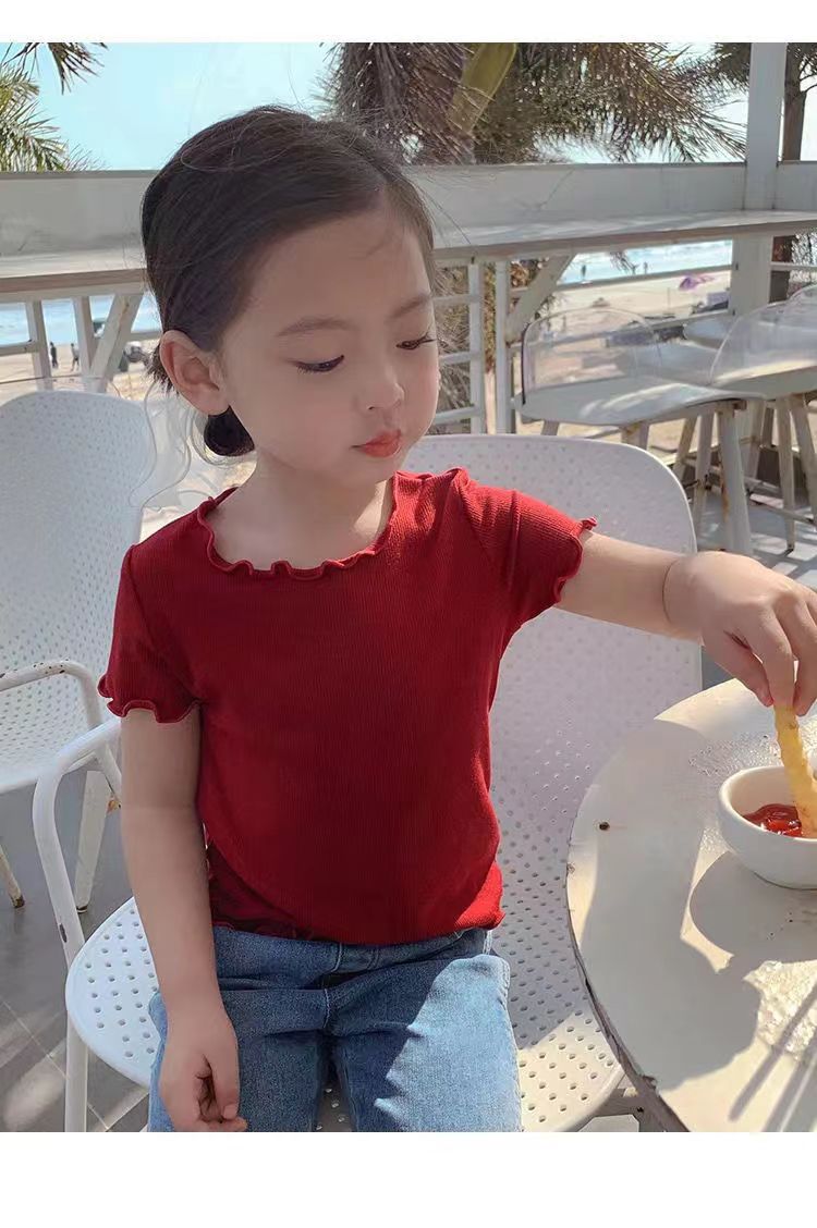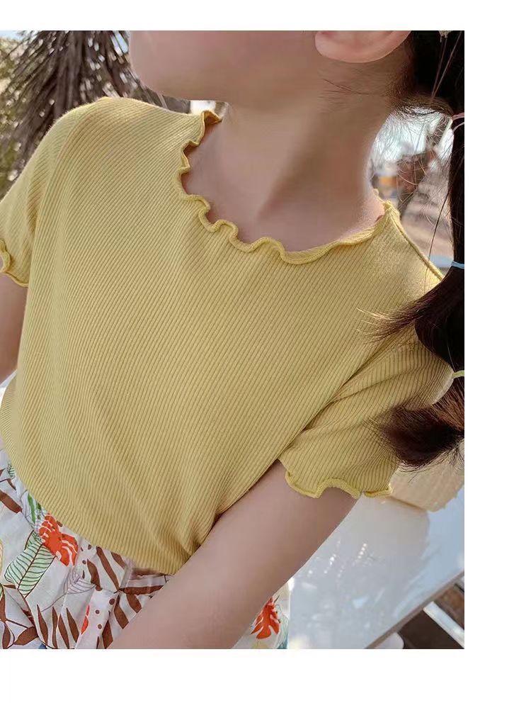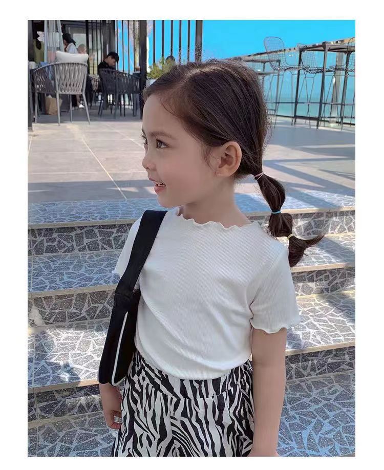 【夏季爆款!百搭】冰丝短袖t恤新款韩版女童宝宝夏装百搭条纹洋气木耳边中小 童上衣