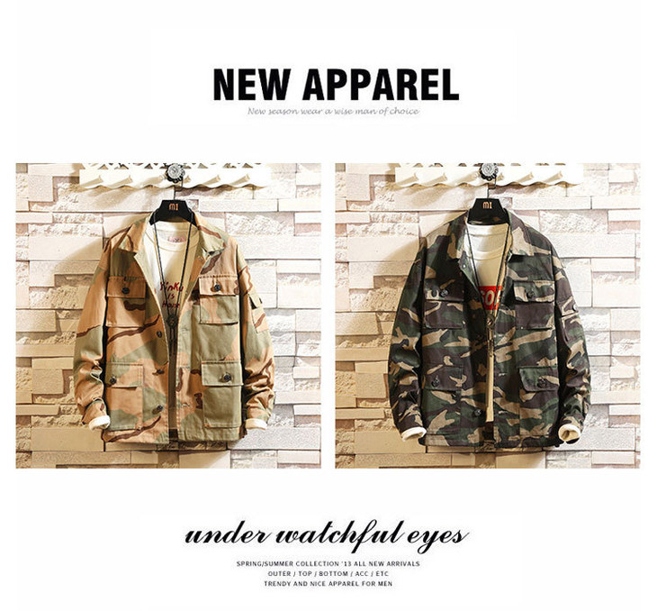 【夹克男】秋冬款复古日系原宿迷彩夹克外套欧美潮牌情侣工装休闲宽松夹克男