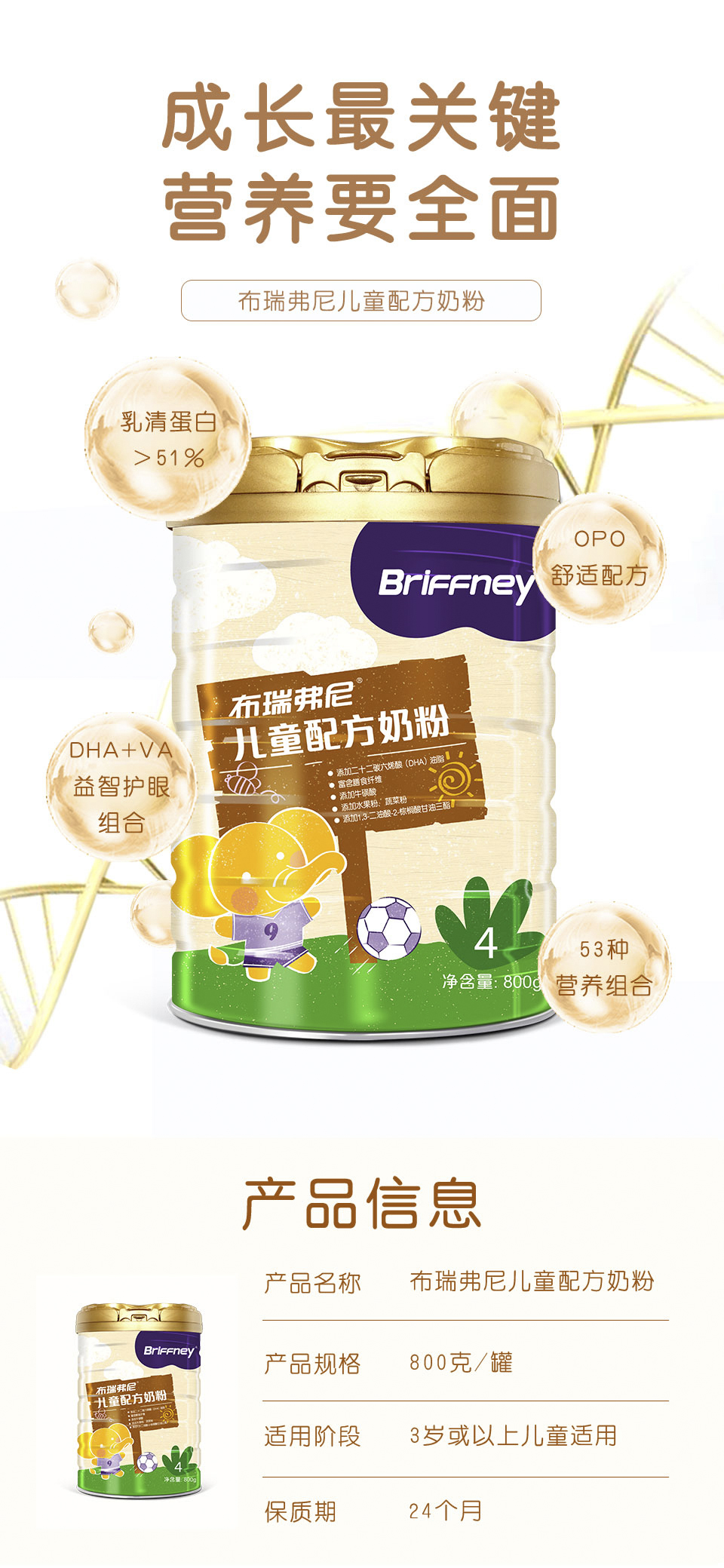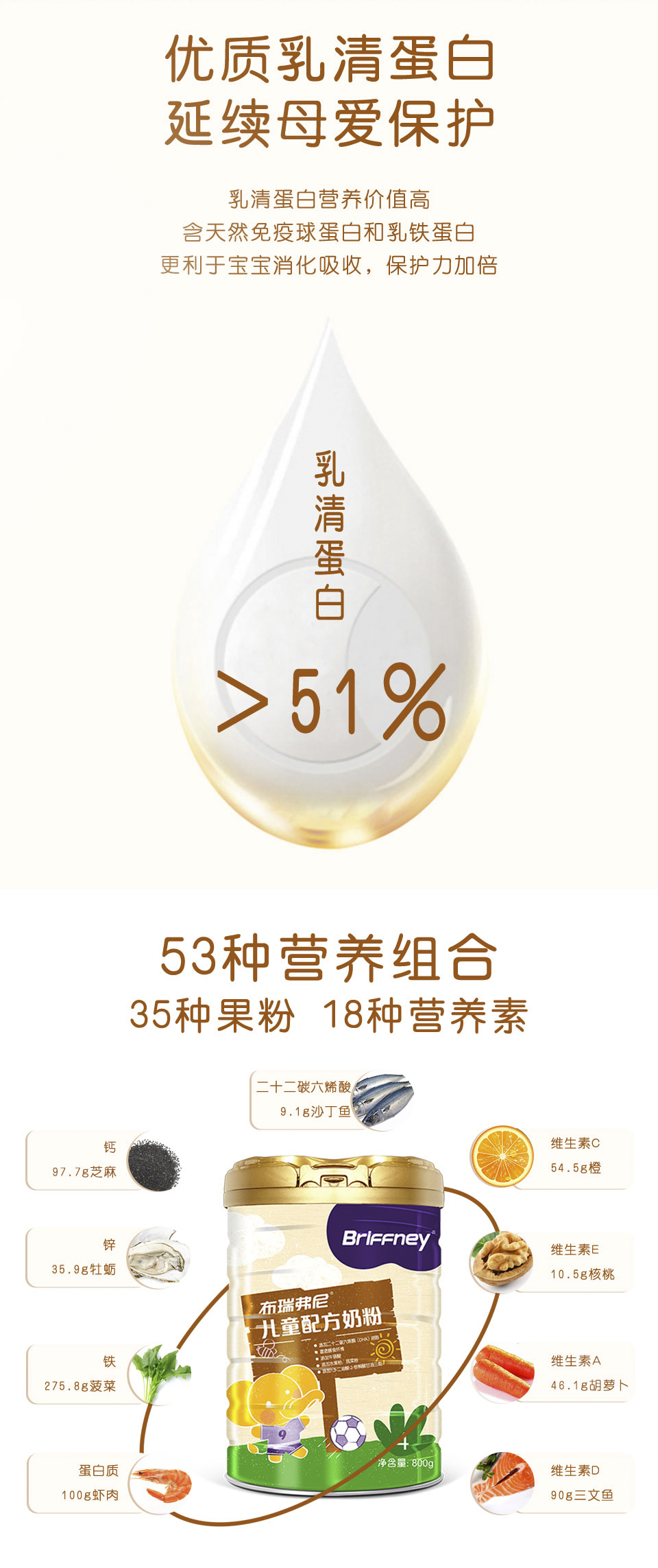 圣元布瑞弗尼儿童奶粉补充钙铁锌53种营养素不挑食3-14岁配方