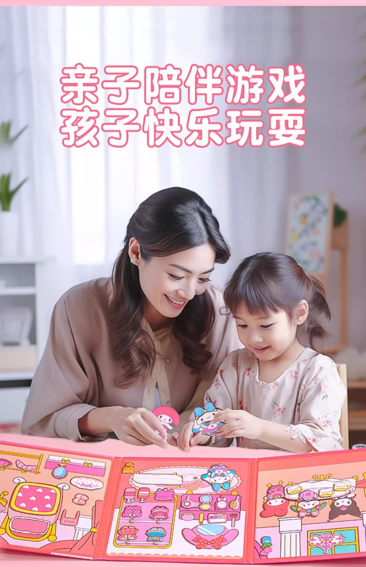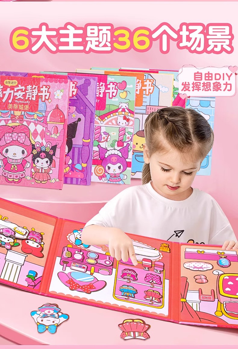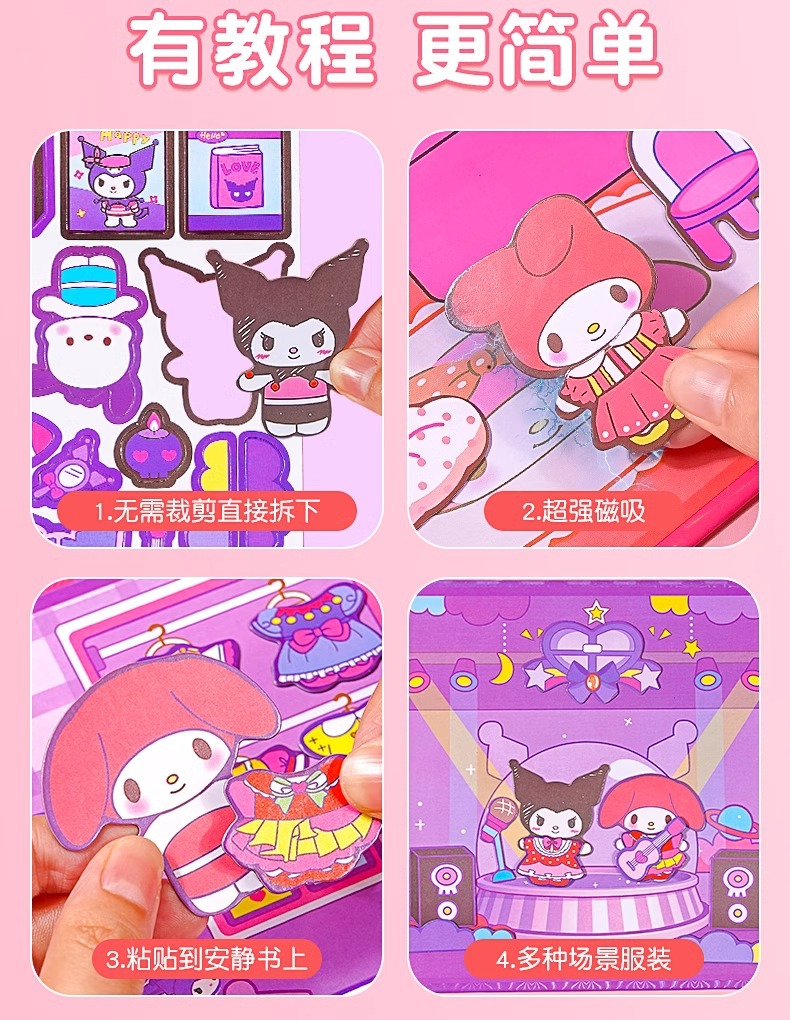 新款三丽鸥手工diy库洛米磁力安静书磁吸贴纸书免裁剪全系列玩具