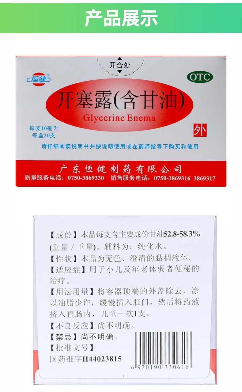 恒健开塞露(含甘油)10ml*20支 成人便秘 老年体弱者 小儿通便