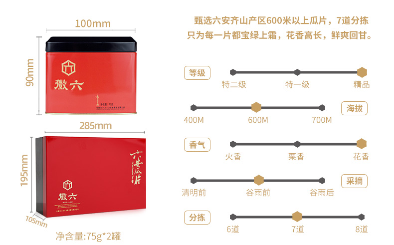2025新茶上市徽六精品六安瓜片绿茶茶叶天五75g*2赠包装手提袋节日送礼