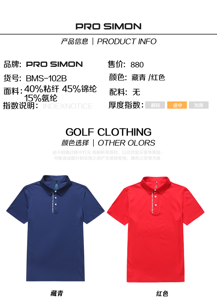 BMS-102B(PROSIMON高尔夫男款春夏短袖简约风翻领Polo衫)