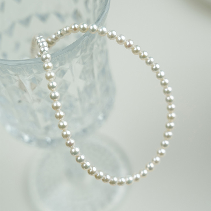 小米珠更显精巧,完美贴合颈部纤细的锁骨位置。