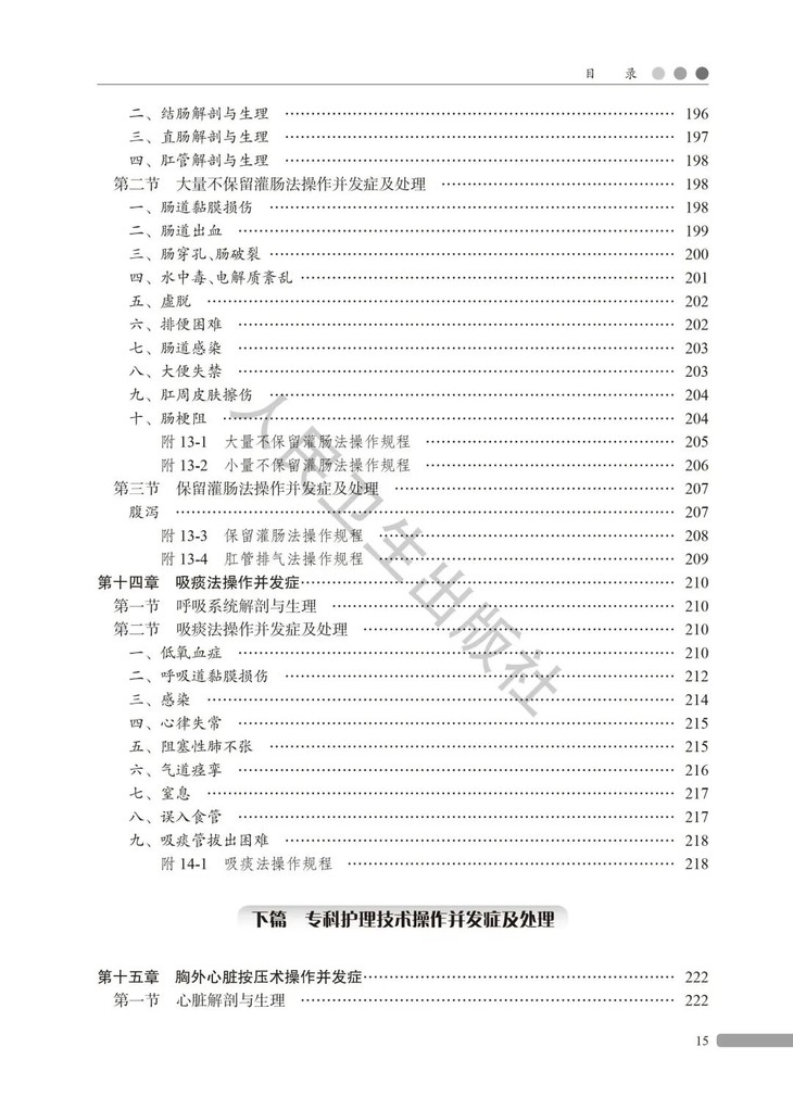 《护理技术操作并发症预防及处理》一书自2014年出版以来,深受临床护理工作者的认可和喜爱。为适应新时期护理技术发展的需要,《护理技术操作并发症预防及处理》(第2版)对全书部分内容做了调整、补充和完善。内容共分为两篇二十四章。上篇为基础护理技术操作并发症及处理,共十四章;下篇为专科护理技术操作并发症及处理,共十章。每章内容分为本操作涉及的器官或系统的解剖生理、易出现的并发症、有关护理操作技术规程三部分,其中并发症发生的原因、临床表现、预防及处理详细论述,使护理人员清楚地知道在进行护理技术操作规程中易发生哪些并发症、应如何防止并发症的发生、发生操作并发症时该如何正确处理。本书力求图文并茂,使读者易于理解,并加深记忆。