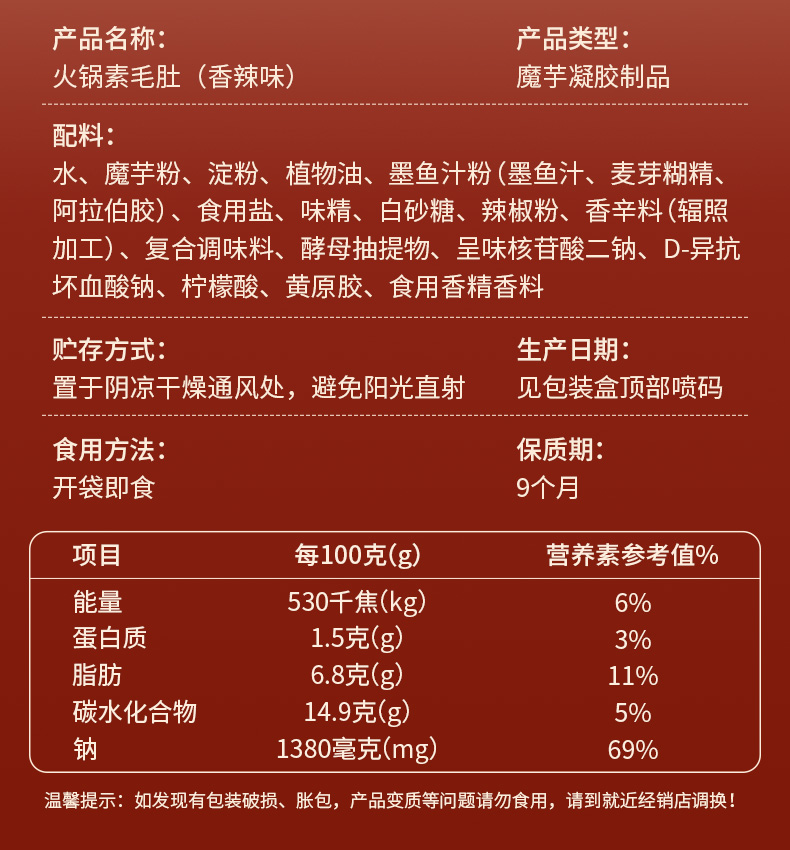 祖名火锅素毛肚香辣味火锅魔芋爽零食小吃休闲食品辣爽360g