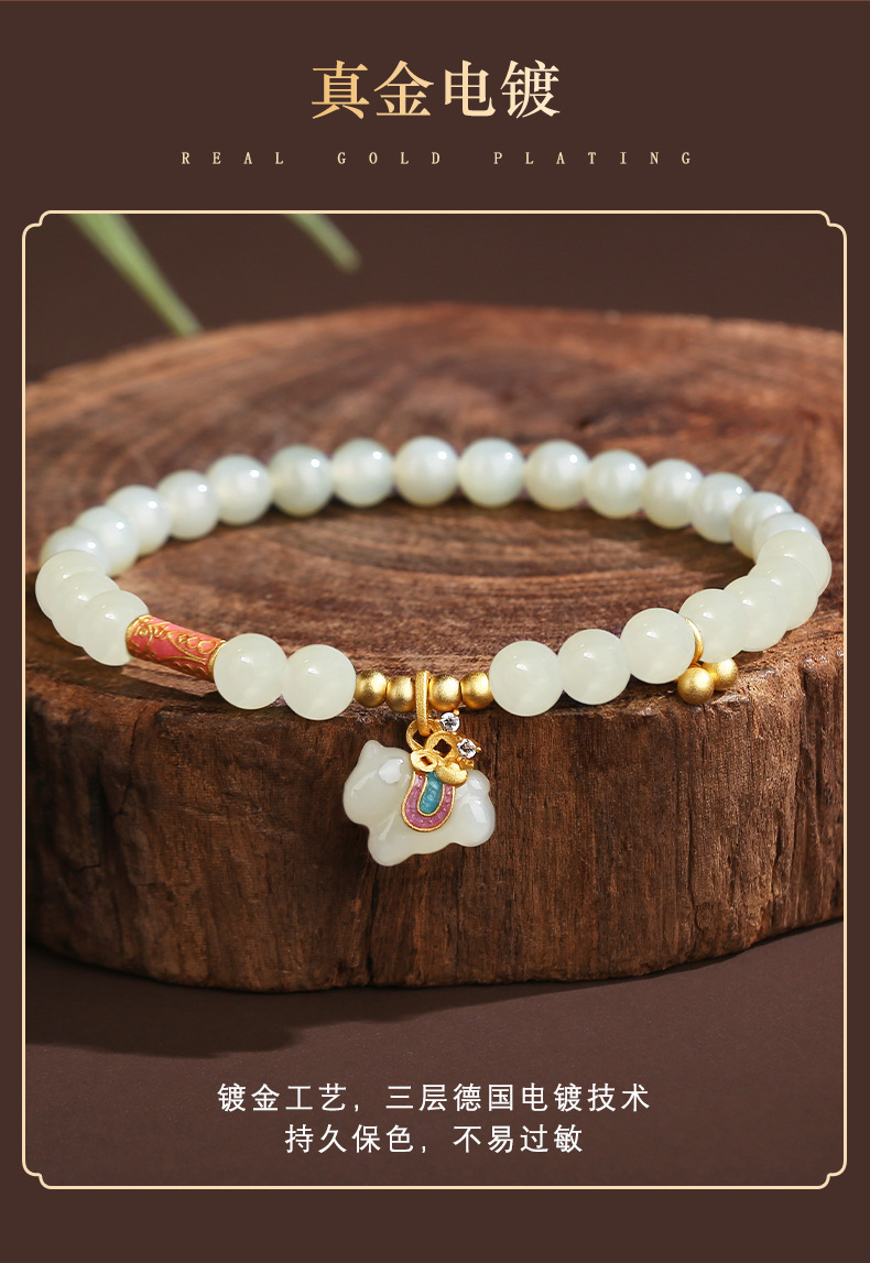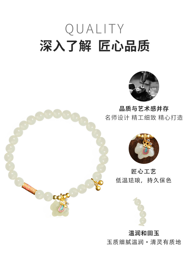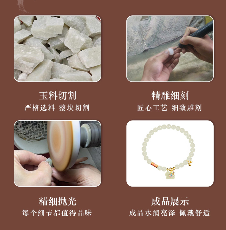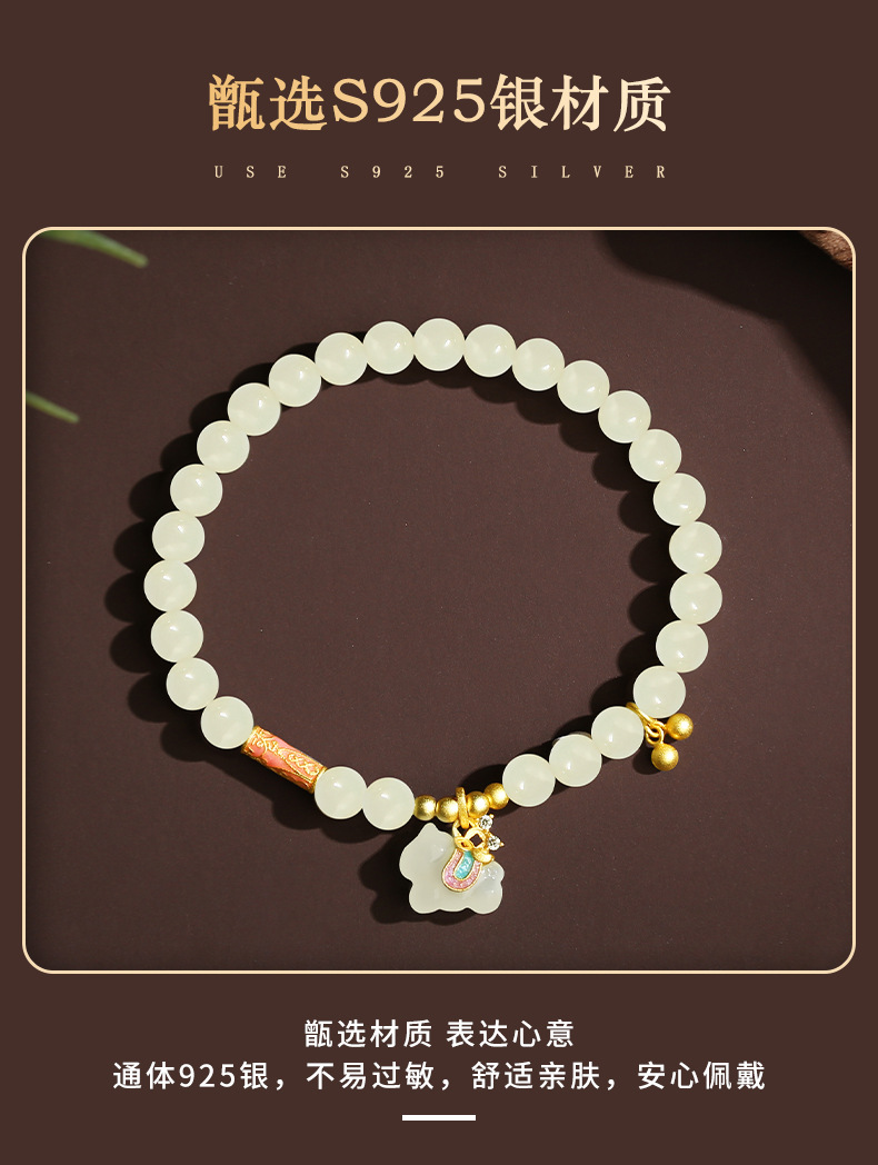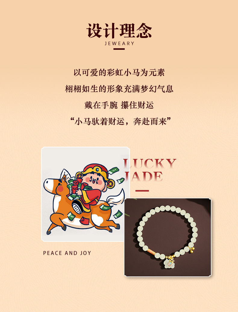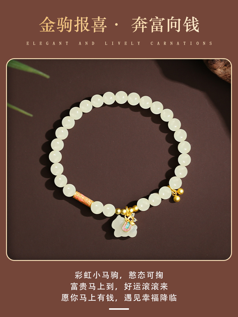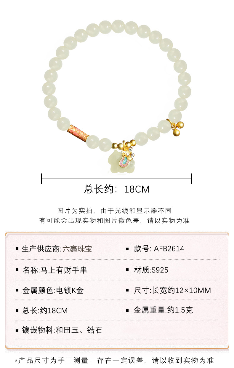 六鑫珠宝 天然和田玉马上有财手串女时尚马年新款s925银可爱梦幻风玉石手链