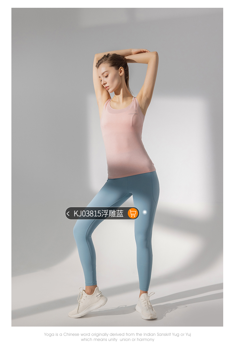 【路路精选】运动瑜伽外穿圆领收腰轻薄透气无袖含胸垫女螺纹背心