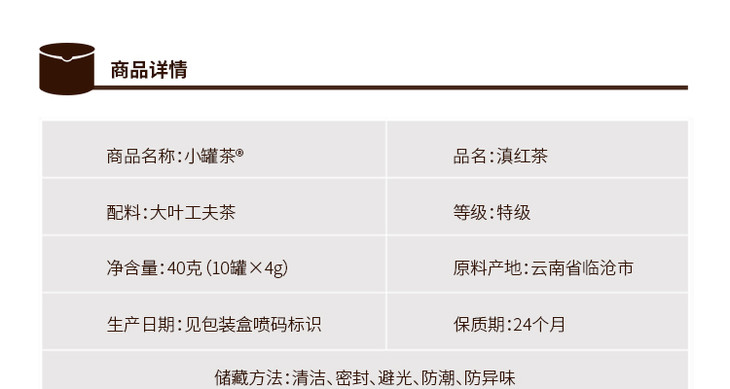 【618】2.0 小罐茶滇红  特级红茶云南凤庆滇红茶叶礼盒装40g  顺丰包邮 商品图2