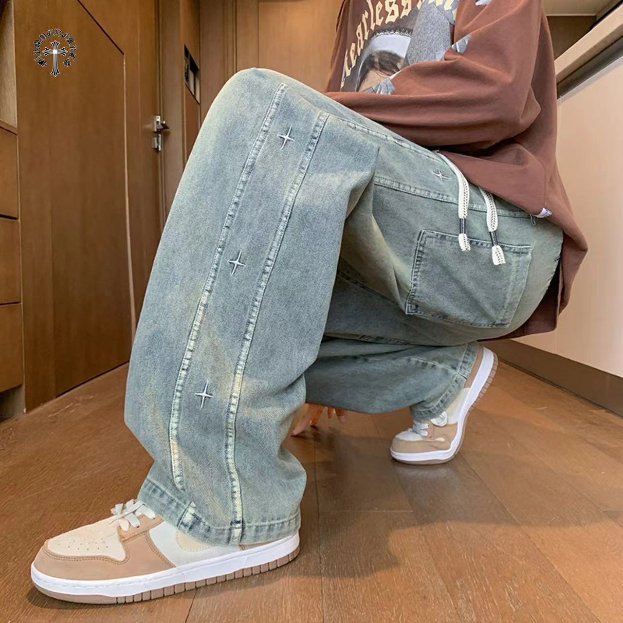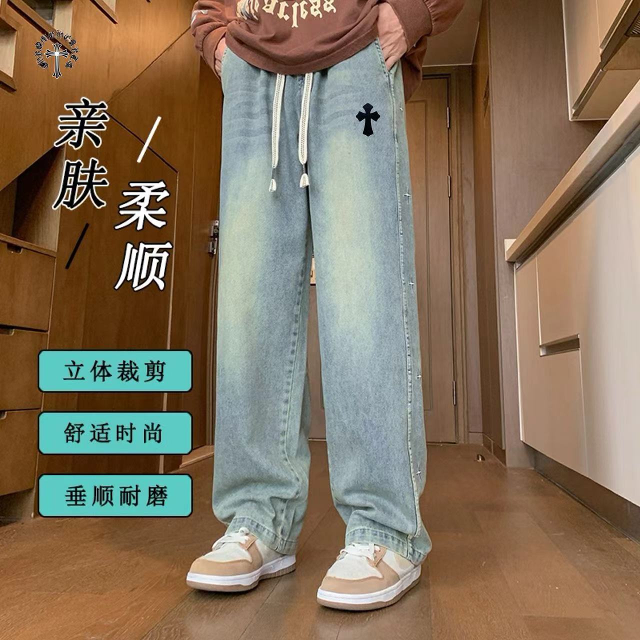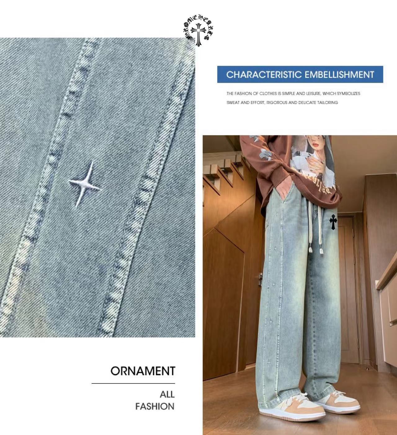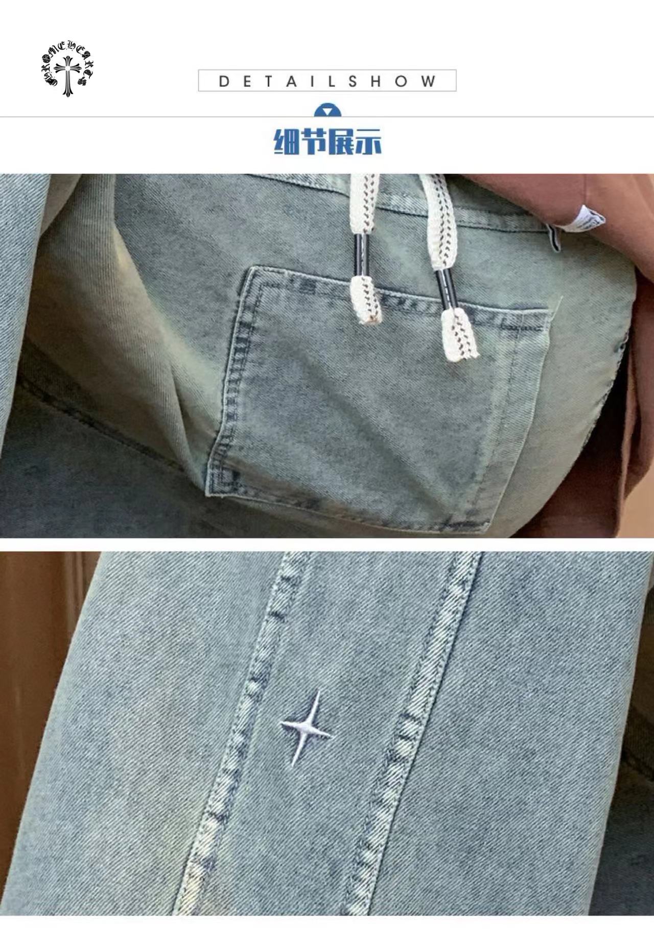 新款贴皮标重工水洗刺绣串标相拼直筒牛仔裤裤子版型宽松 细节wan美 水洗牛仔面料耐磨耐脏 立体裁剪宽松版型 进口机器印花反复水洗不会开裂脱落 男女同款情侣款