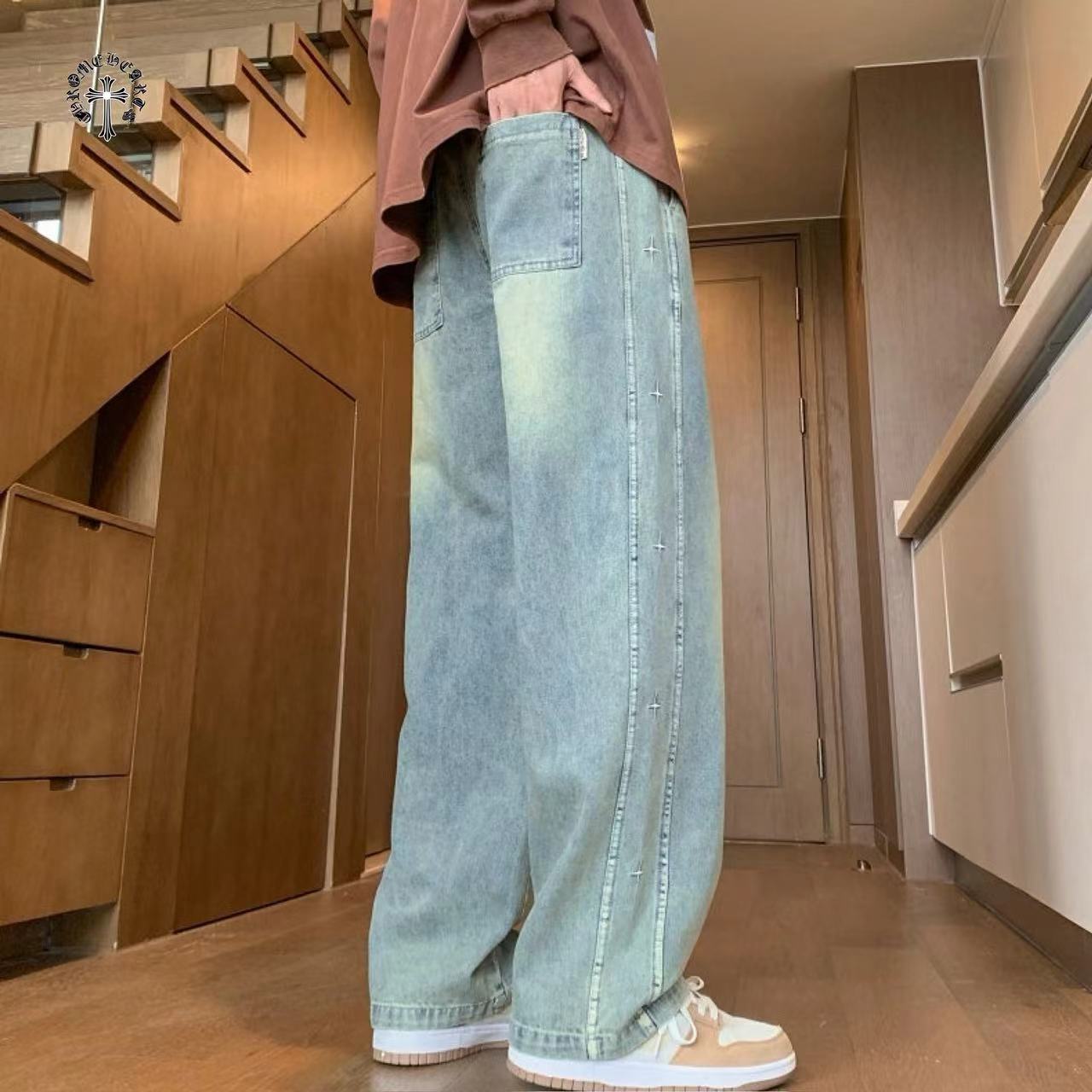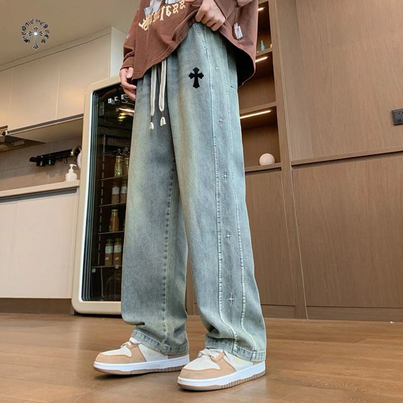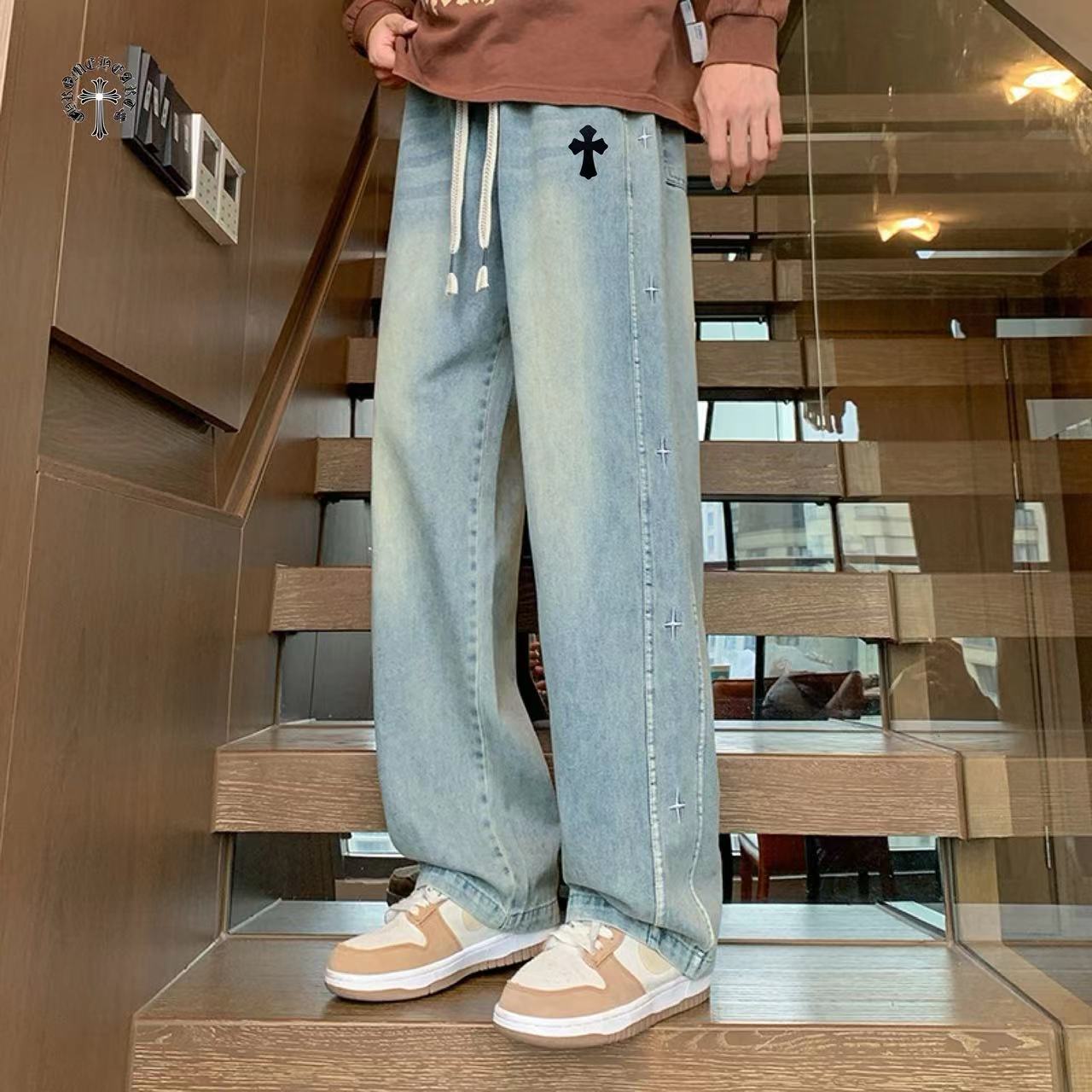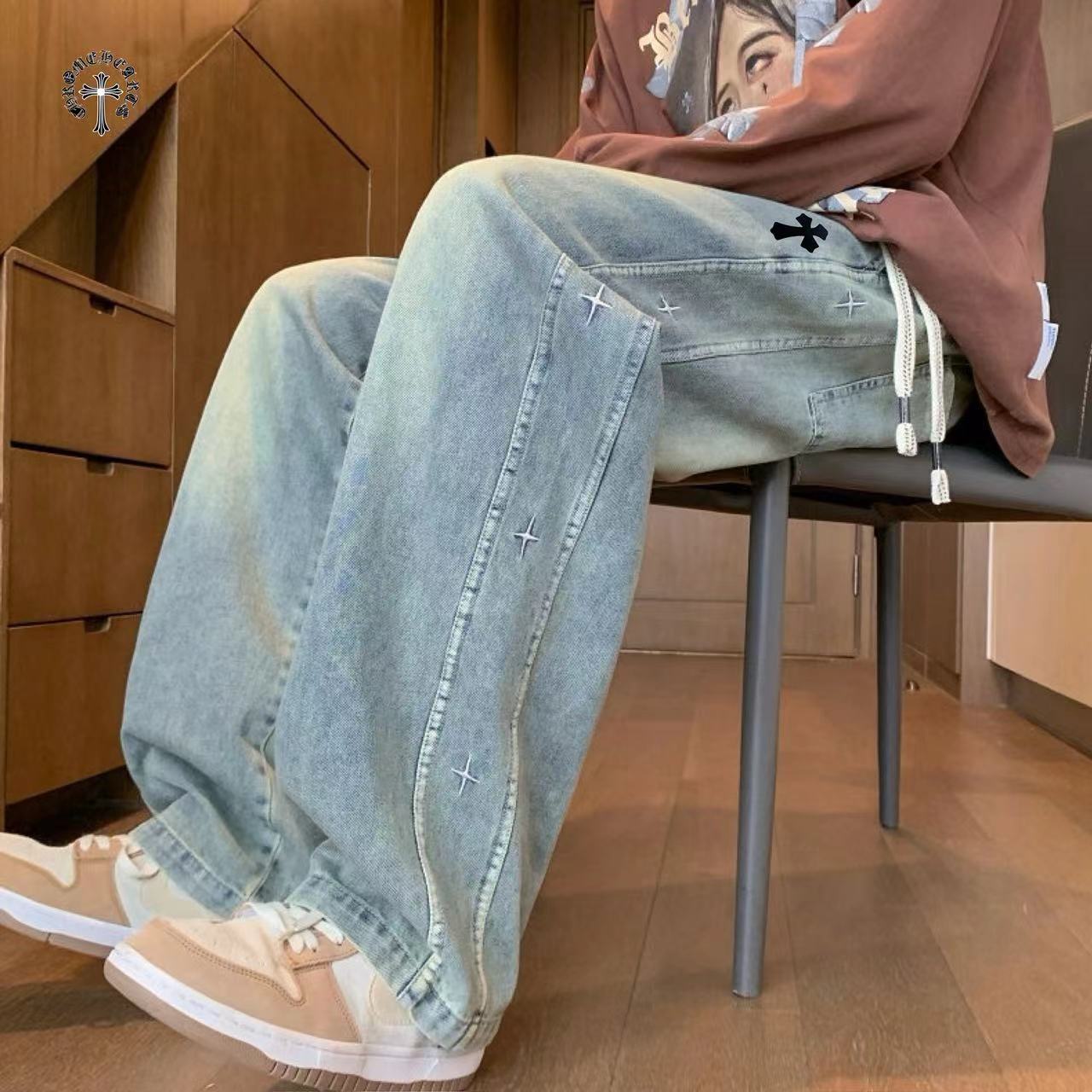 新款贴皮标重工水洗刺绣串标相拼直筒牛仔裤裤子版型宽松 细节wan美 水洗牛仔面料耐磨耐脏 立体裁剪宽松版型 进口机器印花反复水洗不会开裂脱落 男女同款情侣款
