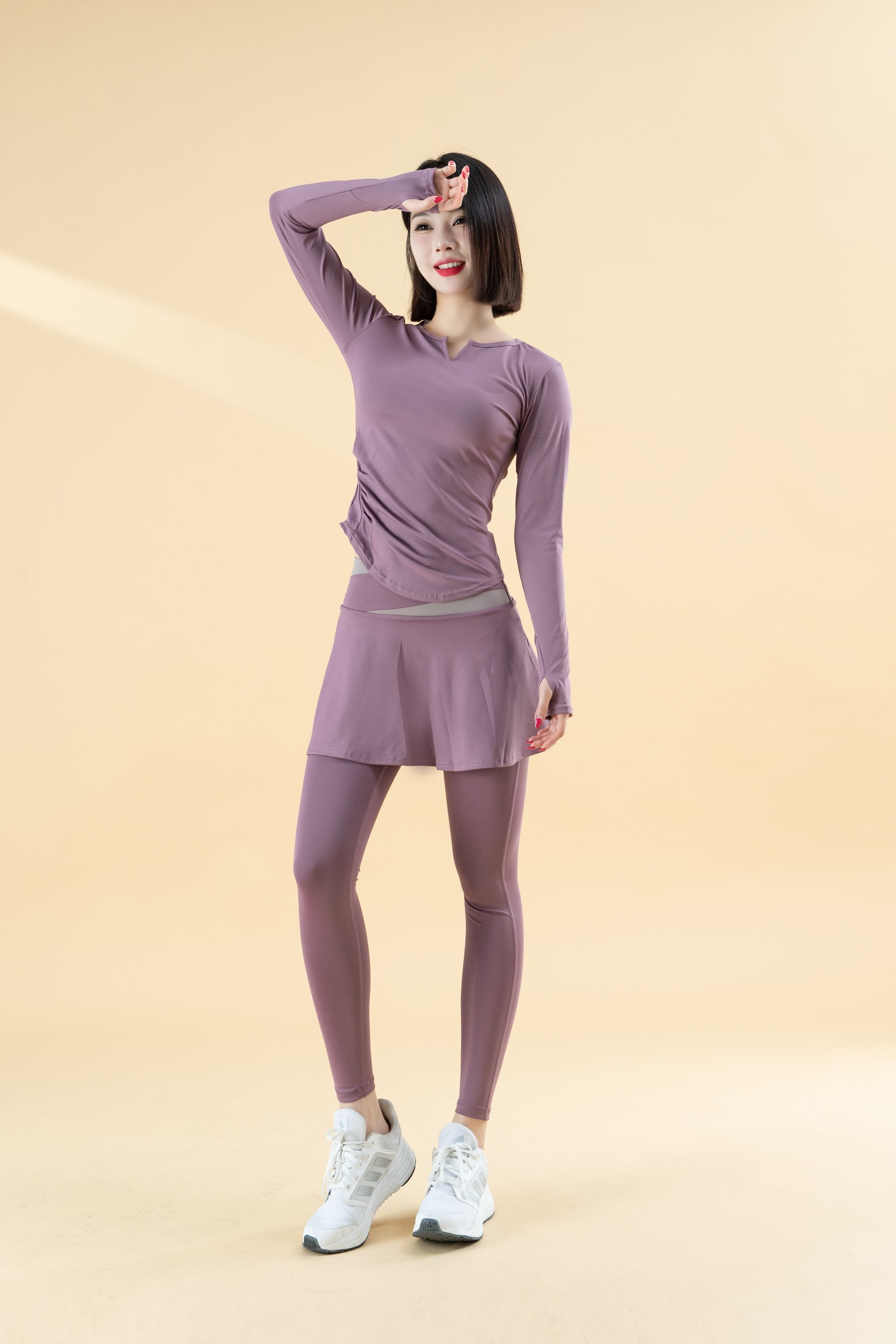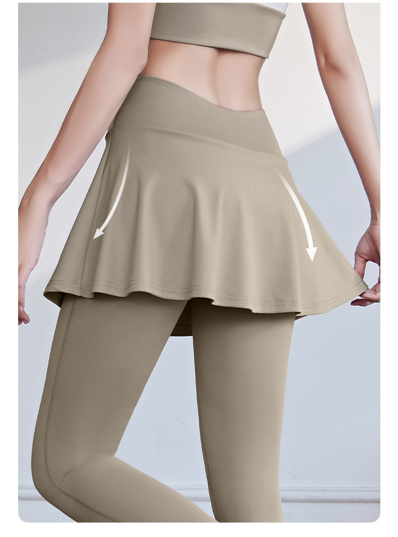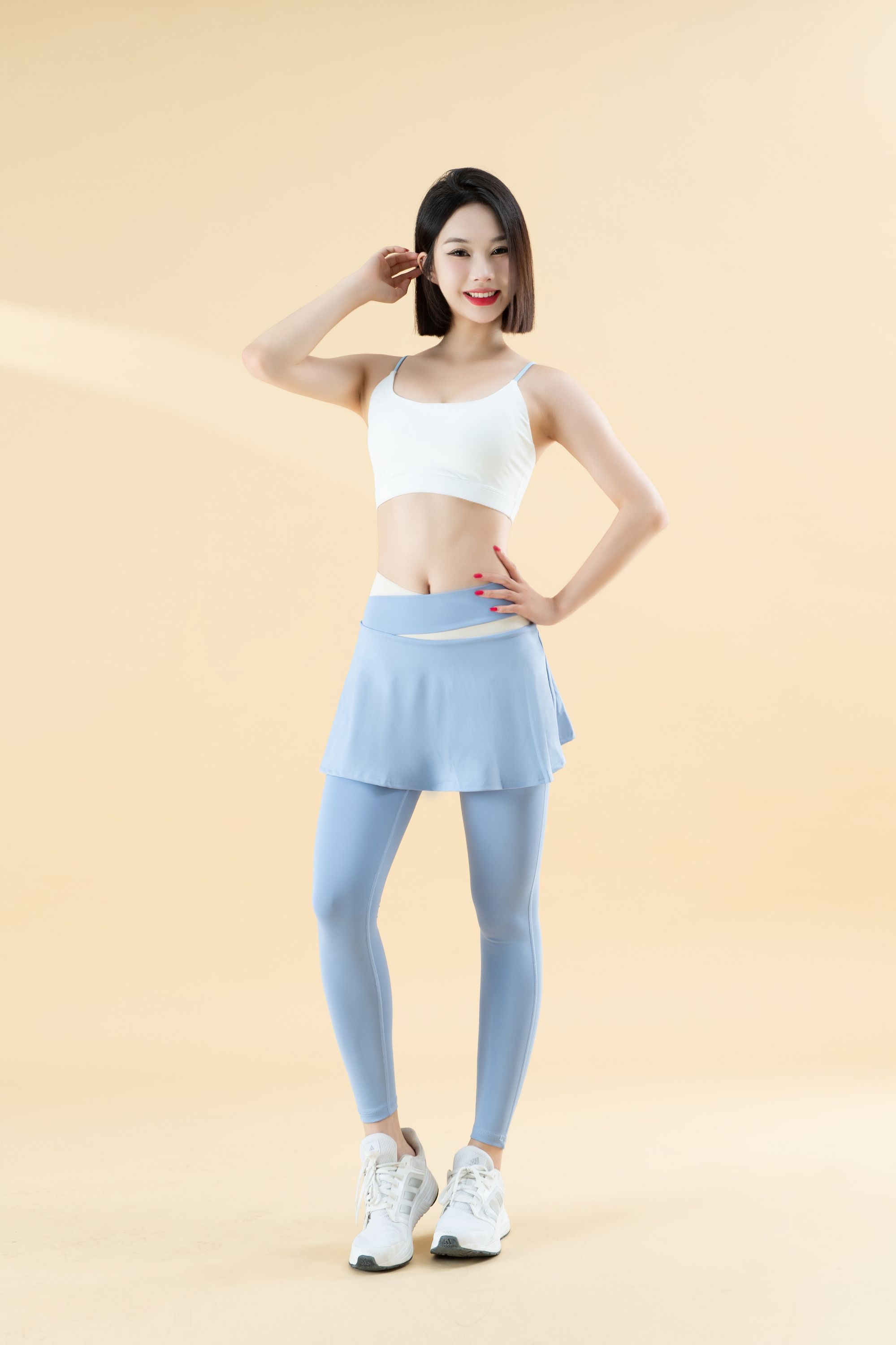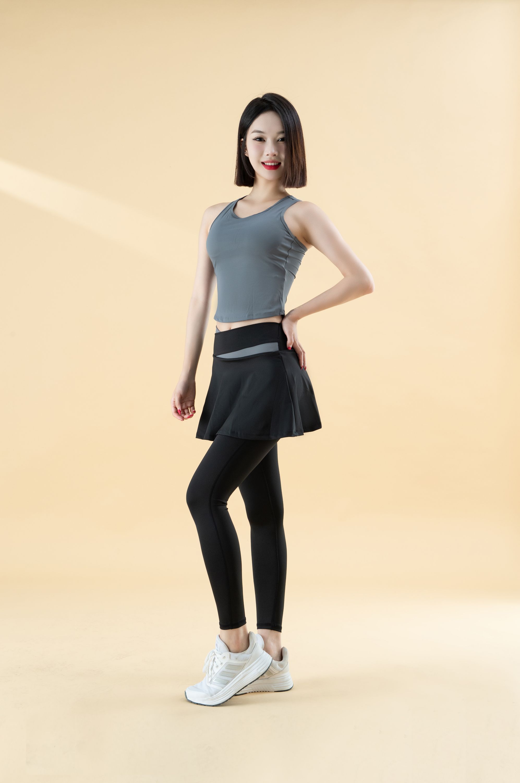 跃牌【瑜堂系列】新款假两件防走光裸感高弹拼色高腰提臀裤JYMK033