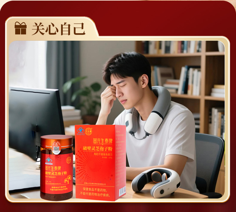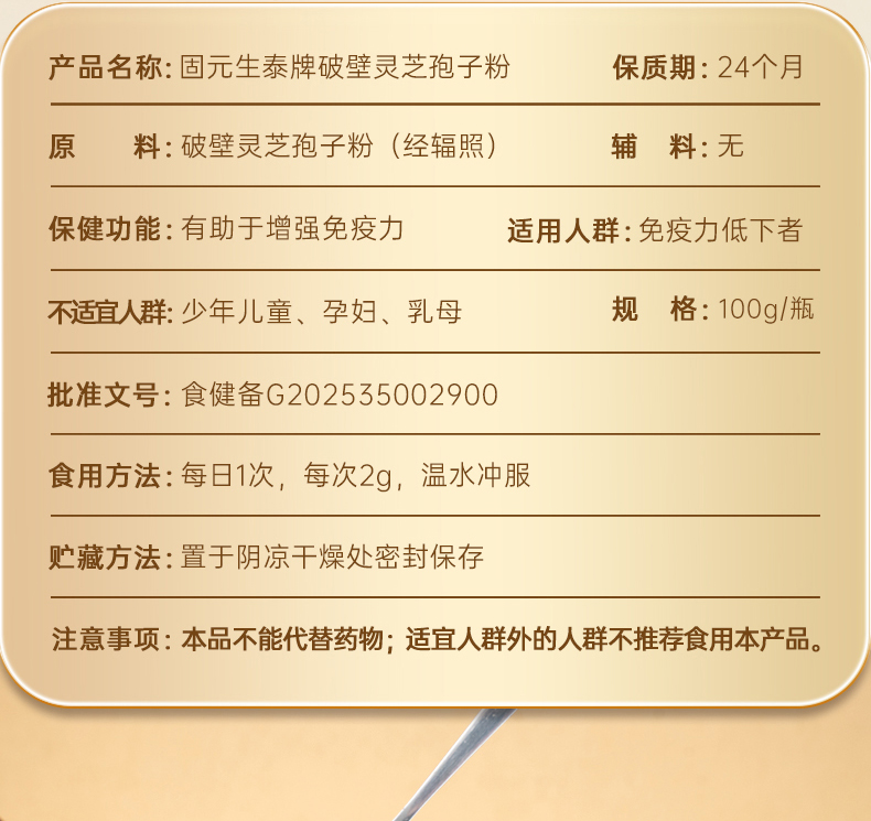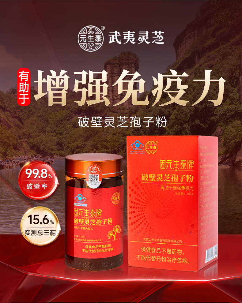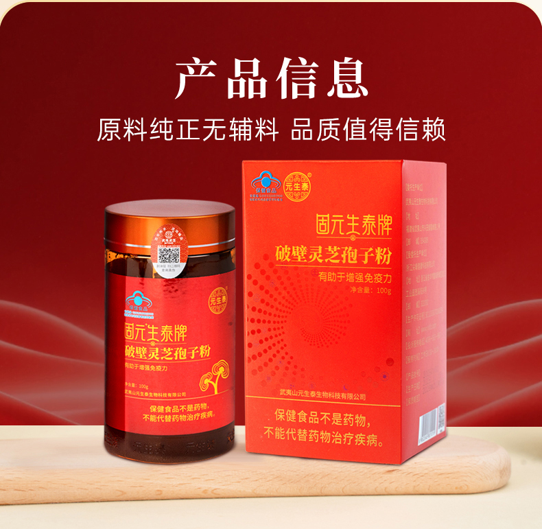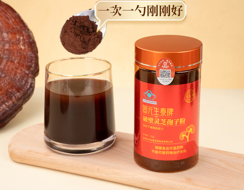 固元生泰破壁灵芝孢子粉 100g/瓶 增强免疫力 中老年人营养滋补保健品