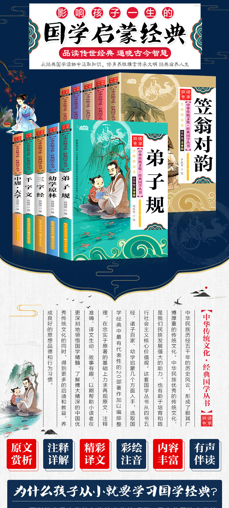 论语国学经典书籍正版三字经弟子规百家姓千字文笠翁对韵中庸大学声律启蒙曾增广文贤彩图注音版一二年级阅读课外书必读老师推荐