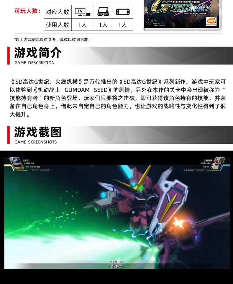 【畅玩卡可租】二手Switch游戏 SD高达G世代 火线纵横 中文版