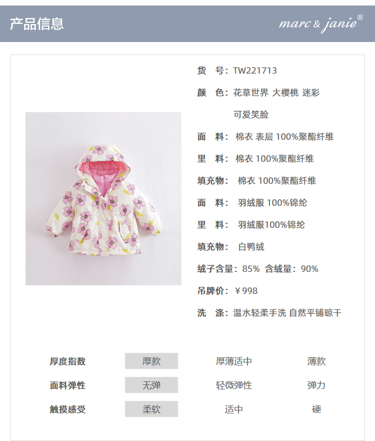 【三防】马克珍妮冬装新款 男女童羽绒内胆两件套221713