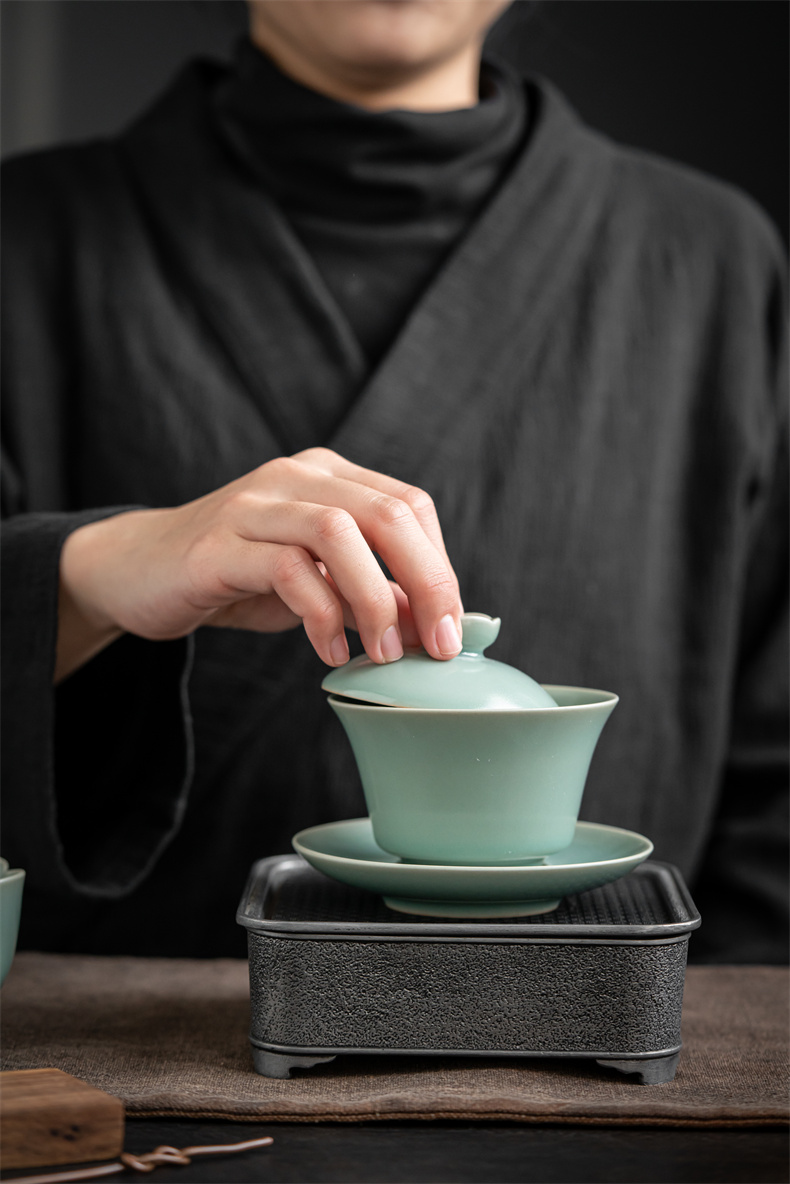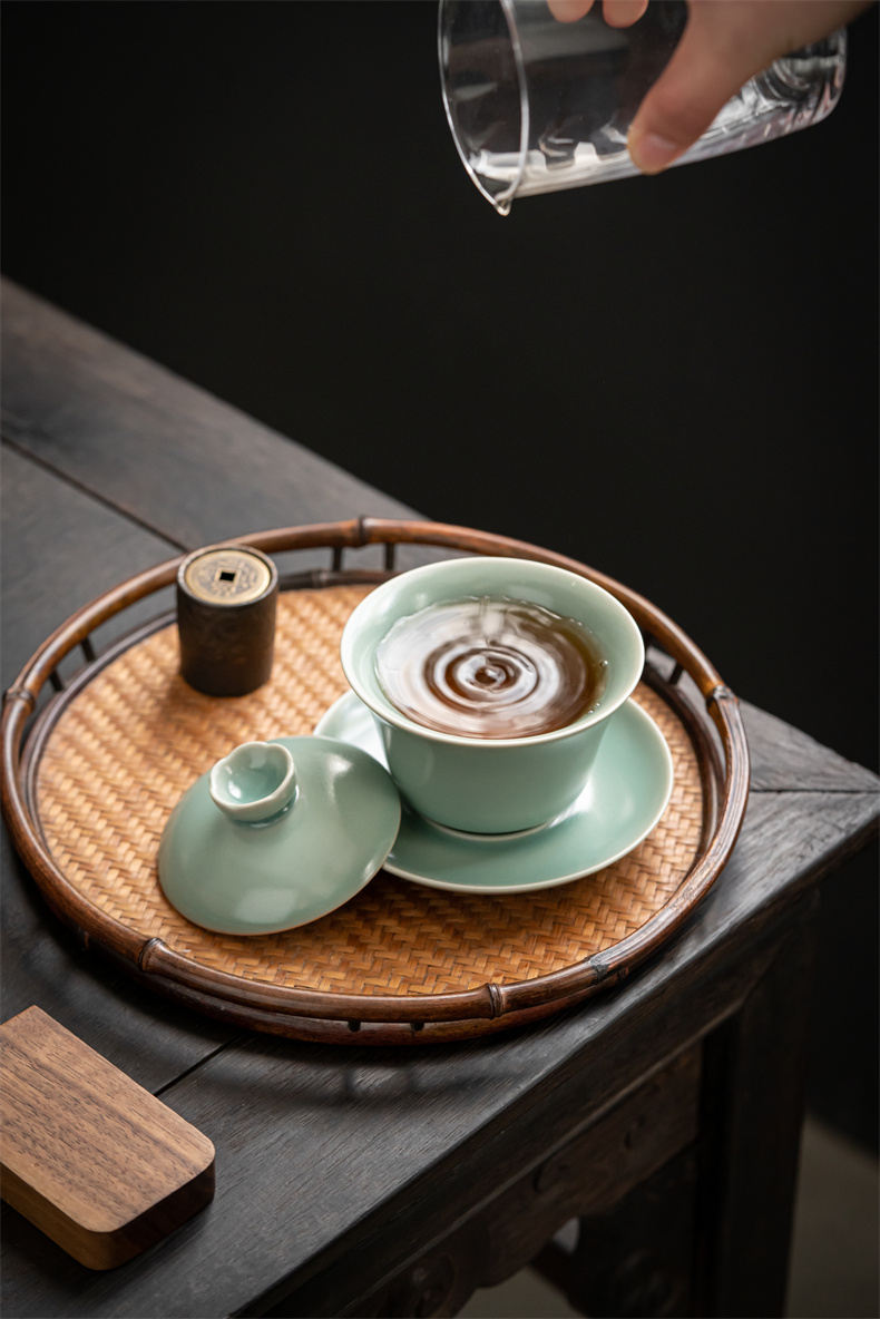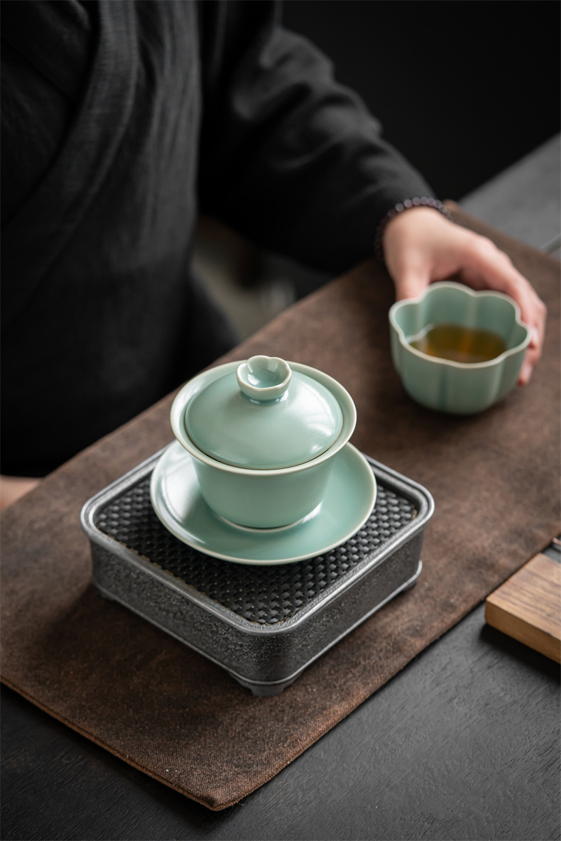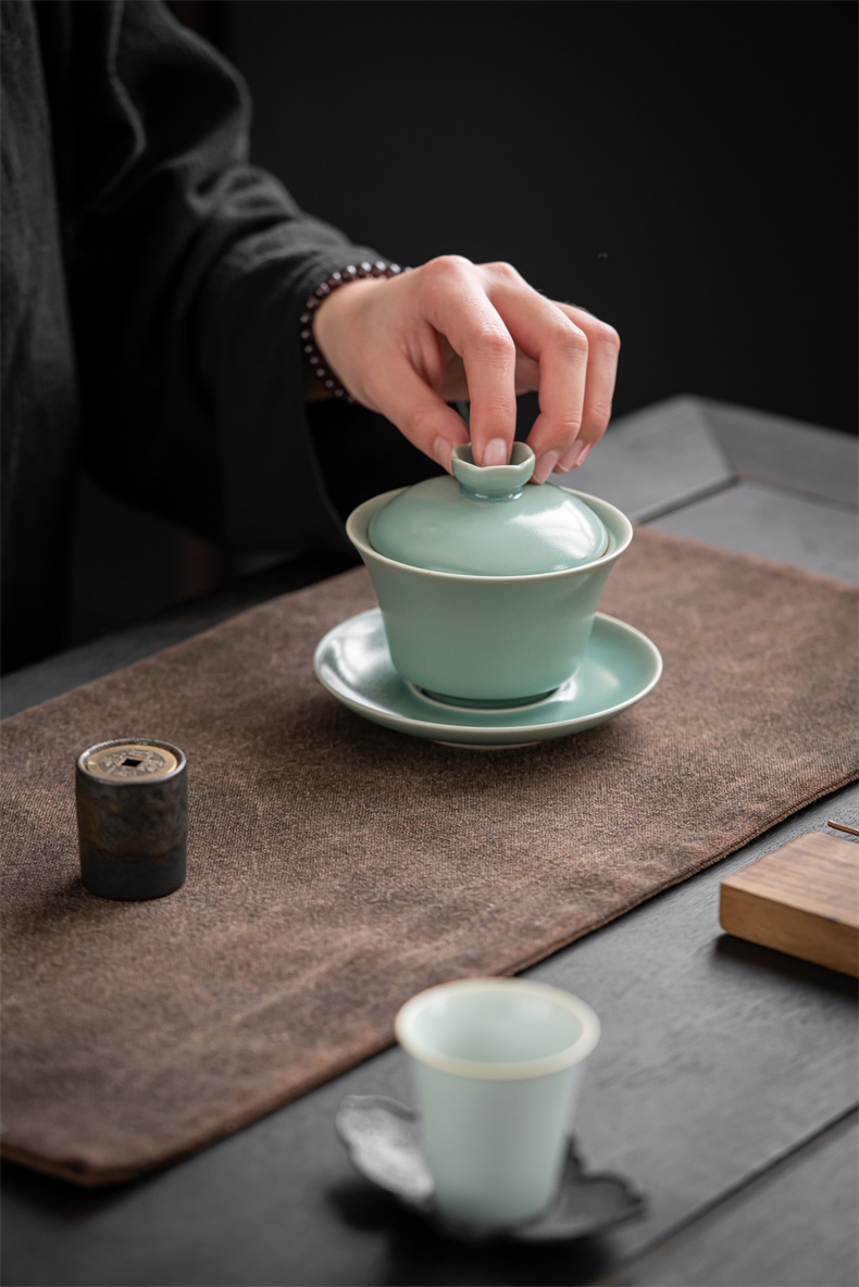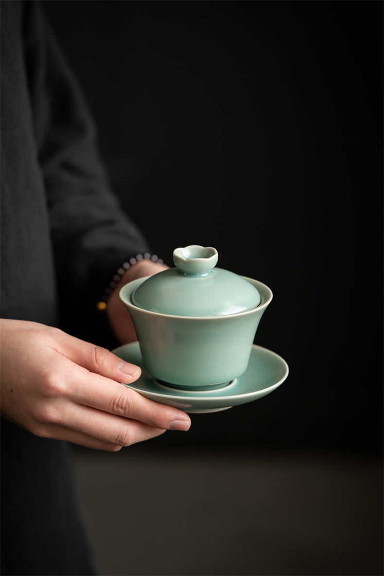 高级徽仿古釉三才盖碗 寻隐