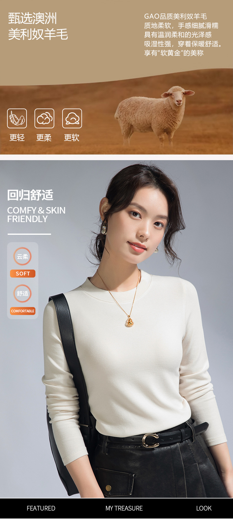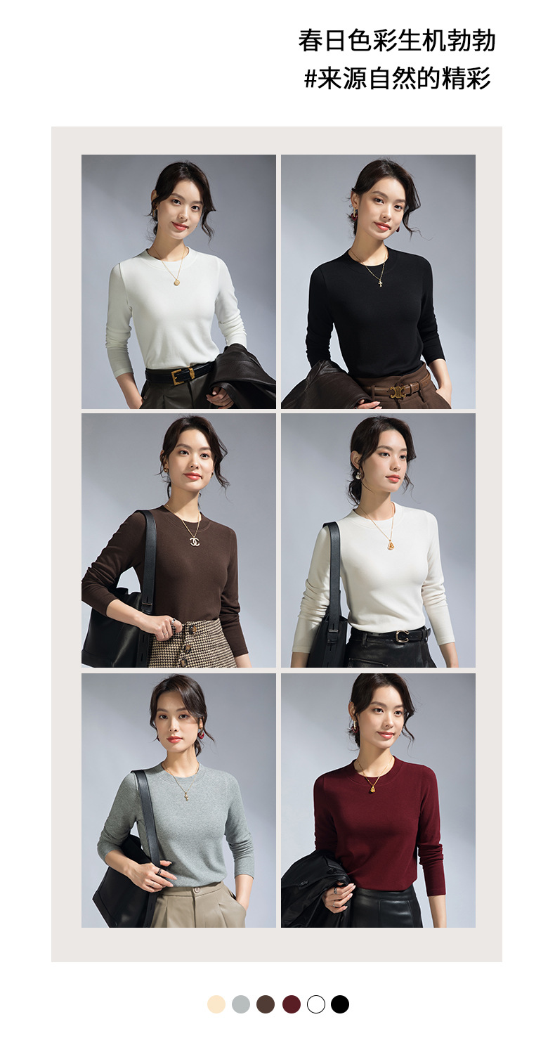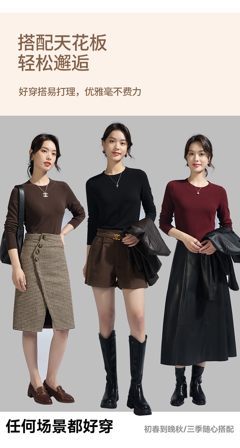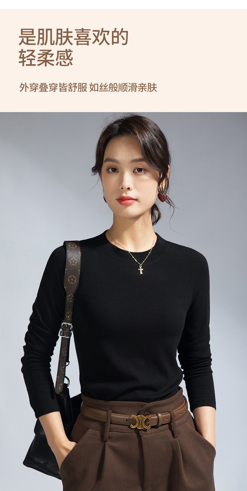 【自】全新升级【铂金会员109/天猫149/差价40】(41241) 洛诗琳绵羊毛打底衫2025春季新款长袖t恤圆领修身显瘦上衣