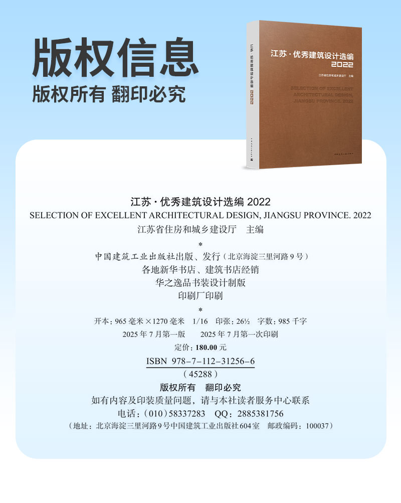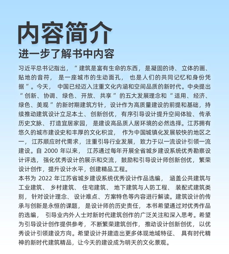 书名:江苏 优秀建筑设计选编2022 SELECTION OF EXCELLENT ARCHITECTURAL DESIGN, JIANGSU PROVINCE. 2022