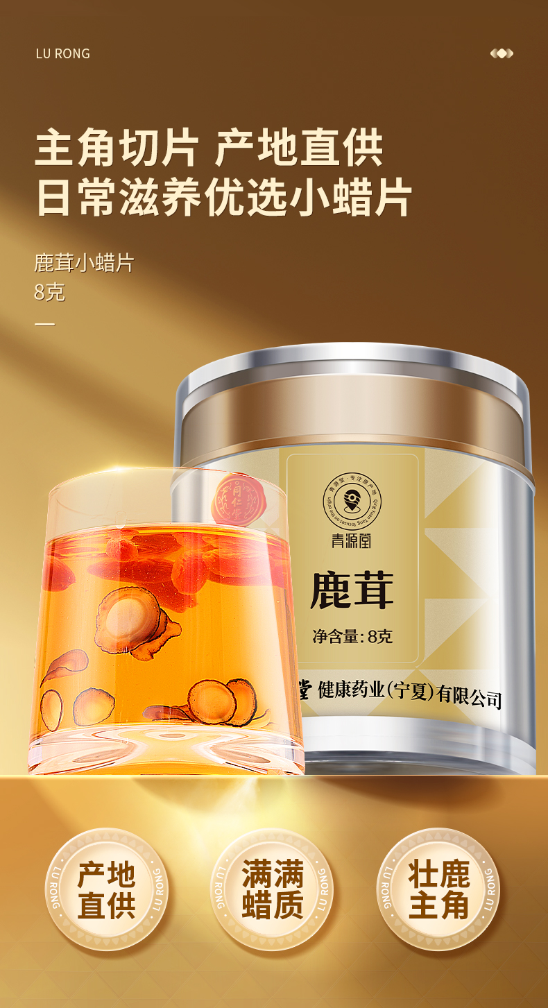 【正宗同仁堂品牌】北京同仁堂 青源堂 鹿茸片 鹿茸小蜡片8克 主角切片 蜡圈丰富 薄厚均匀SY