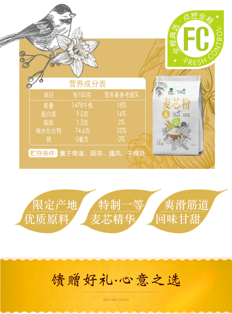 杞冠臻选 | 北大荒·典选面粉礼盒1kg*4 源头好水和好面