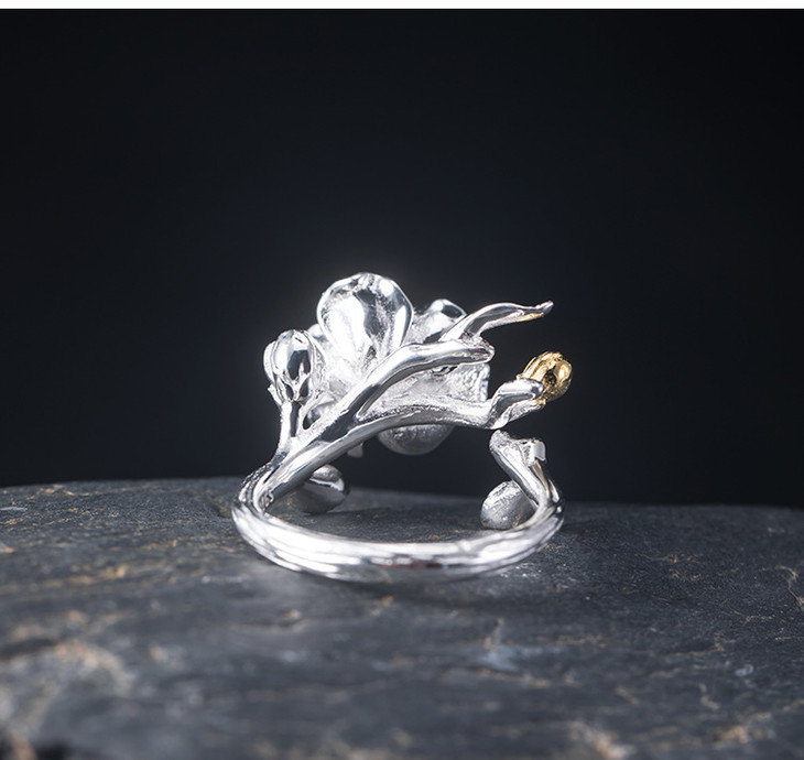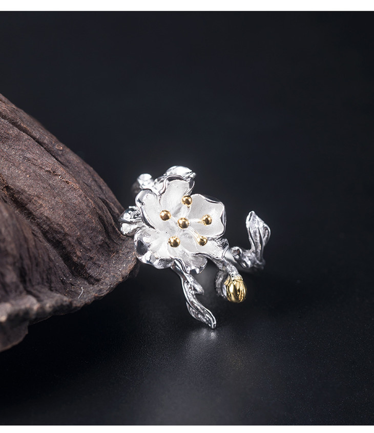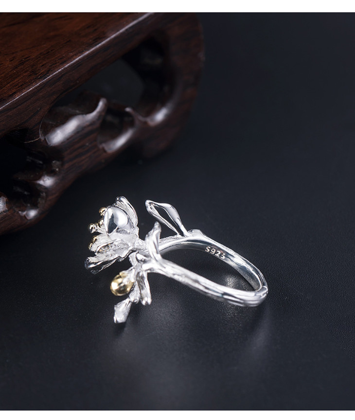 S925银,时尚个性简约气质海棠花开口戒指YM-JZ12243