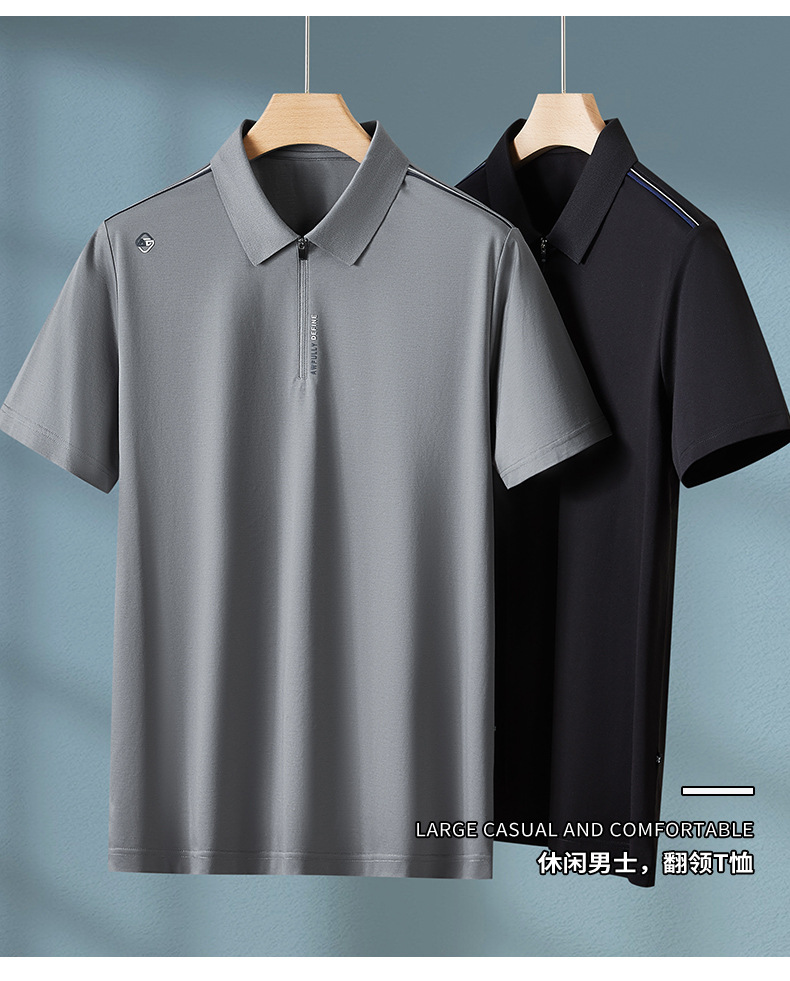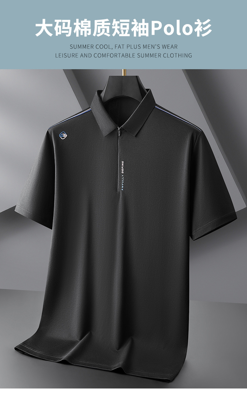 【棉质】【DPF】大依优型大码半拉链短袖polo衫夏季新款肥佬宽松百搭半袖体恤上衣胖子男士
