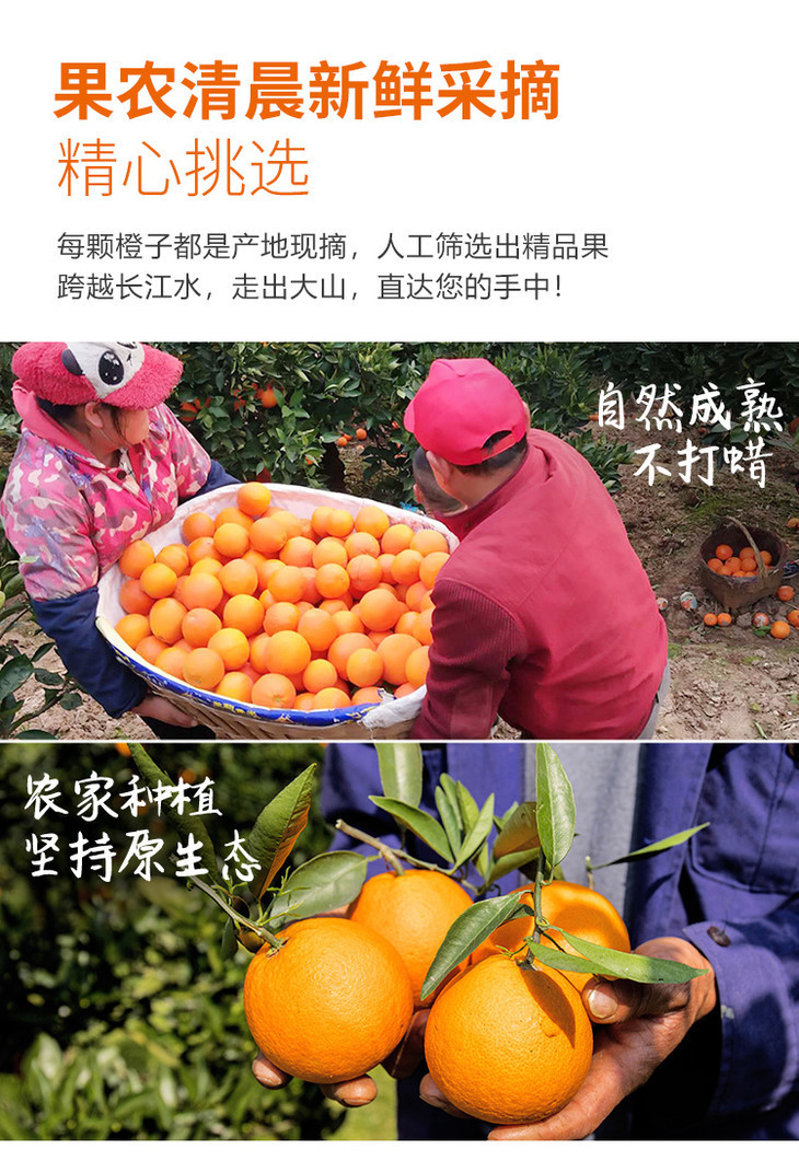 【果蔬精选】湖北秭归伦晚脐橙 享有“橙中皇后”的美誉 树上自然熟不打蜡 晚熟脐橙 果园新鲜采摘 香甜多汁 脆嫩可口 吃完汁水满手留香