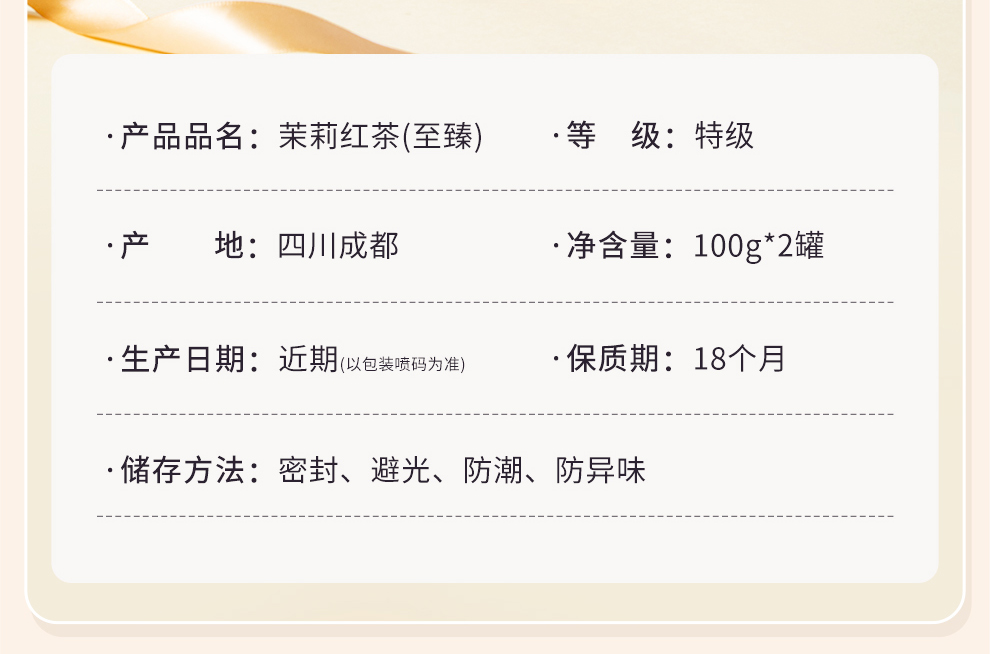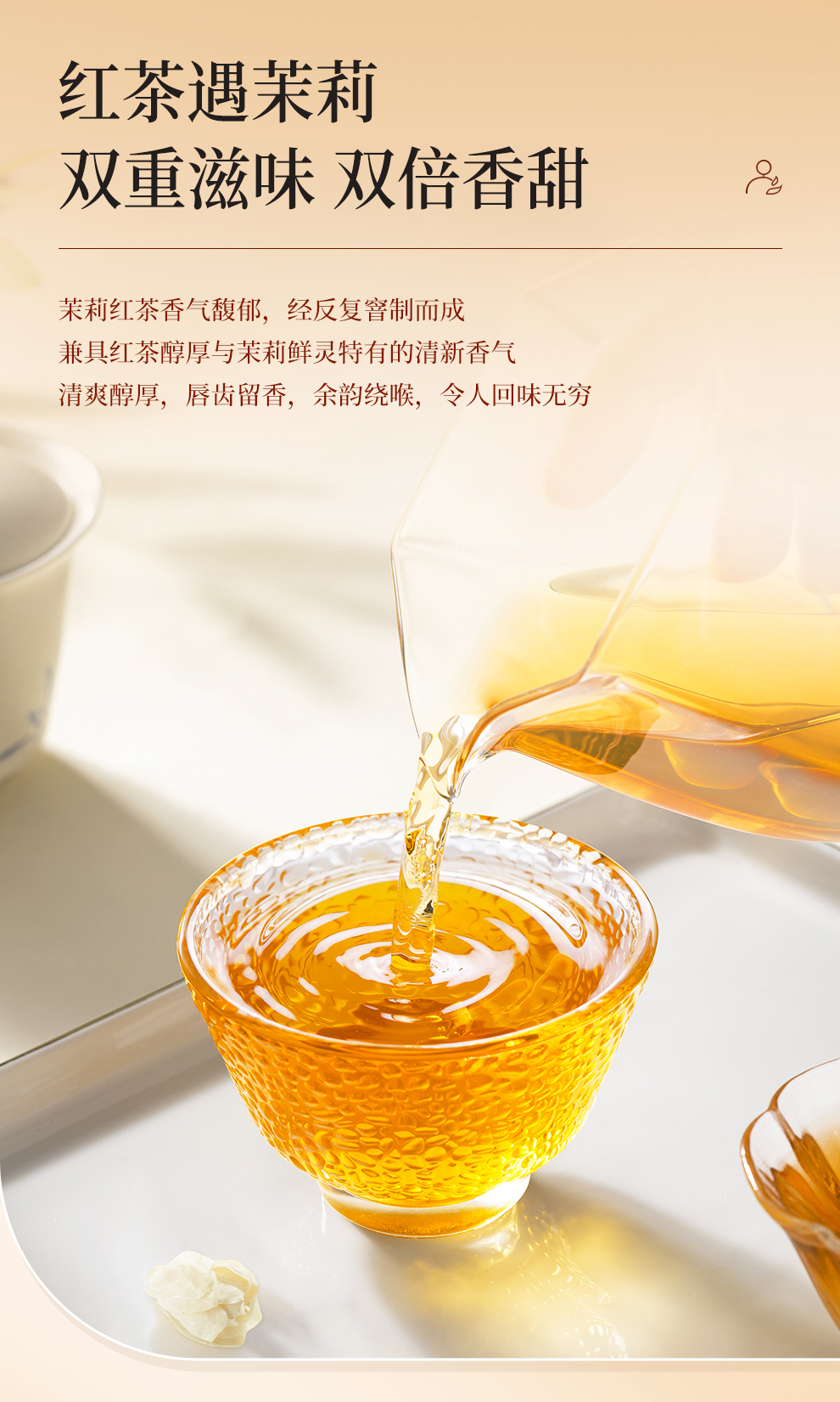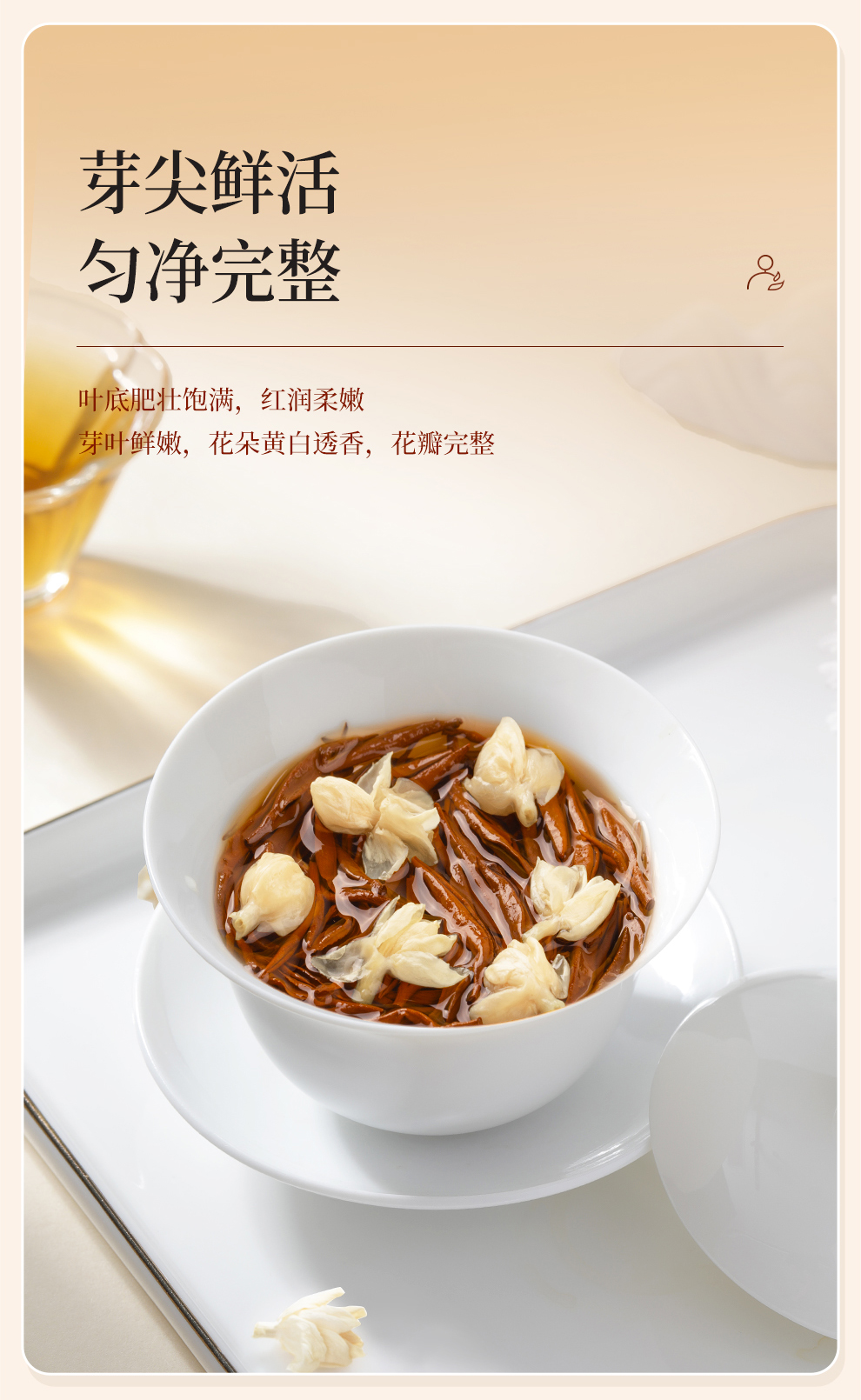 【臻尖-茉莉红茶至臻】茉莉红茶特级浓香型茉莉花茶茶叶100g*2罐