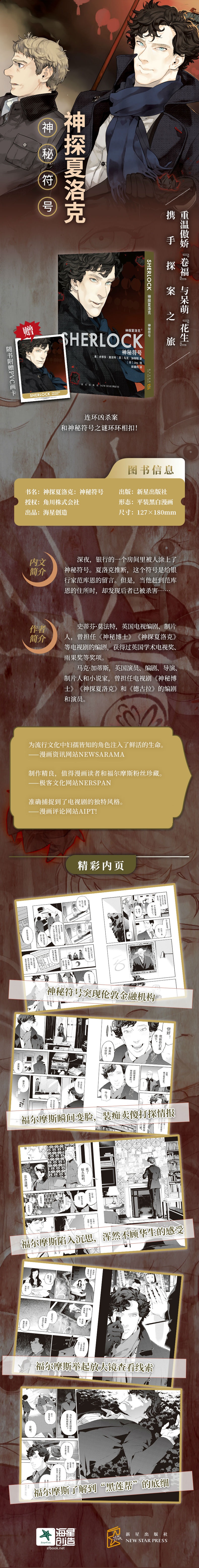 《神探夏洛克》2017年播完第4季后,迟迟没有更新,令全球粉丝捶胸顿足,望眼欲穿。此次引进出版的官方漫画,不仅可以带你重温当年剧集带来的心动,还可以让你从全新的角度欣赏“卷福”成名作的风采。全书收纳于精美环套之中,还附赠“卷福”PVC画卡(单册)和海报(套装),是广大日漫爱好者、侦探小说读者、“卷福”粉丝不容错过的收藏品。