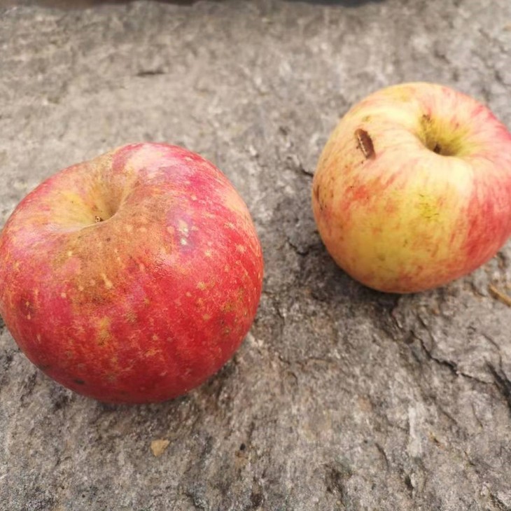 李立君的生态苹果已经生态种植了十多年的时间,苹果不使用化学农药等的投入品,不可避免会有一部分的果子收到虫子侵害,在果皮产生虫痕,瘢痕等的小瑕疵。