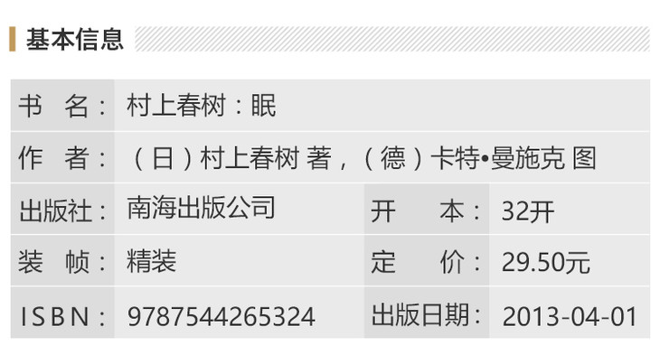 关于村上春树↓↓ 《袭击面店》村上春树反思之作:当你饥肠辘辘的时候,你*想做些什么? 《大萝卜和难挑的鳄梨》:村上春树**作品,《达文西》“年度散文”名,画家大桥步精心配配制插图 《当我谈跑步时,我谈些什么》:与诺贝尔文学奖擦身而过的作家村上春树**本只写自己的书 《没有色彩的多崎作和他的巡礼之年》:村上春树突破之作!迄今*不一样的村上小说! 《无比芜杂的心绪》:村上春树出道以来*重要随笔集,明确对世界表达看法 《天黑以后》:与诺贝尔文学奖擦身而过的作家,村上春树关于孤独的经典之作,全新译本! 《碎片-令人怀念的1980年代》:零距离接触村上春树,了解他*有趣的故事 《1Q84BOOK1,2,3》:村上春树创作30年**杰作!盒装收藏版《悉尼!》:与诺贝尔文学奖擦身而过的作家村上春树谈奥运 ★村上春树觉醒之作 ★17天,我不曾合眼。17个白天,17个黑夜,无眠的世界,你能做些什么? ★卡夫卡的荒诞 爱伦坡的惊悚 ★村上春树*美的书,由德国画家精心绘制插图