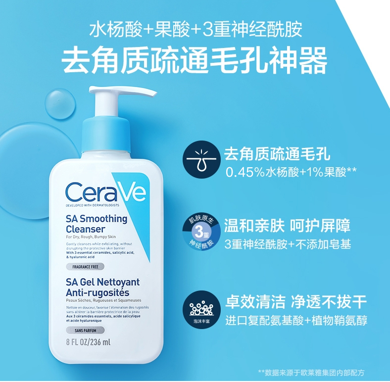 CeraVe适乐肤水杨酸温和嫩肤泡沫洁面啫喱236ml