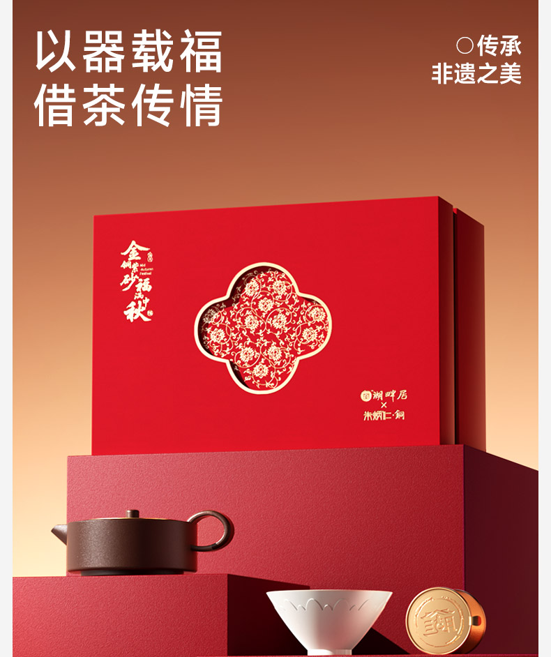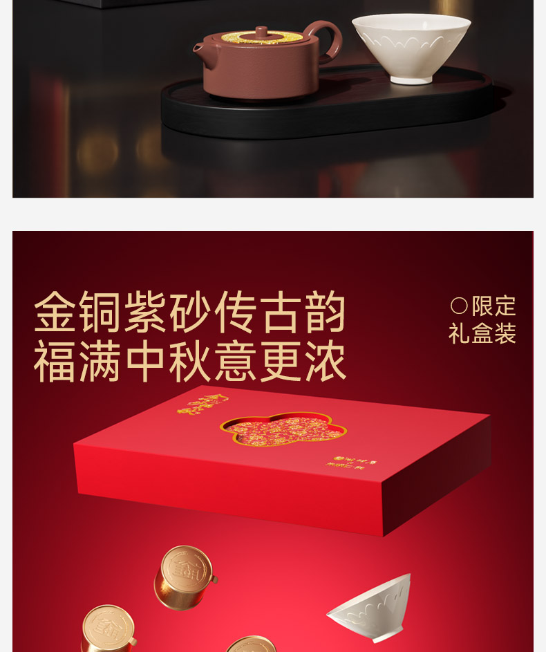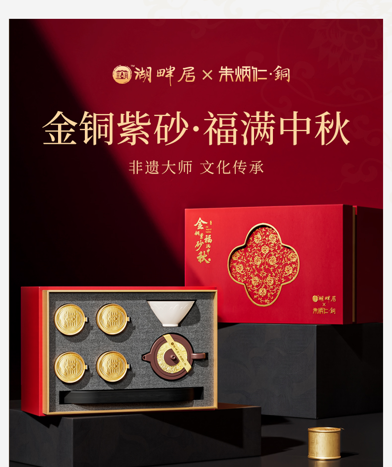 湖畔居中秋【金铜紫砂】福满中秋朱炳仁铜紫砂壶定窑瓷套装送礼茶具