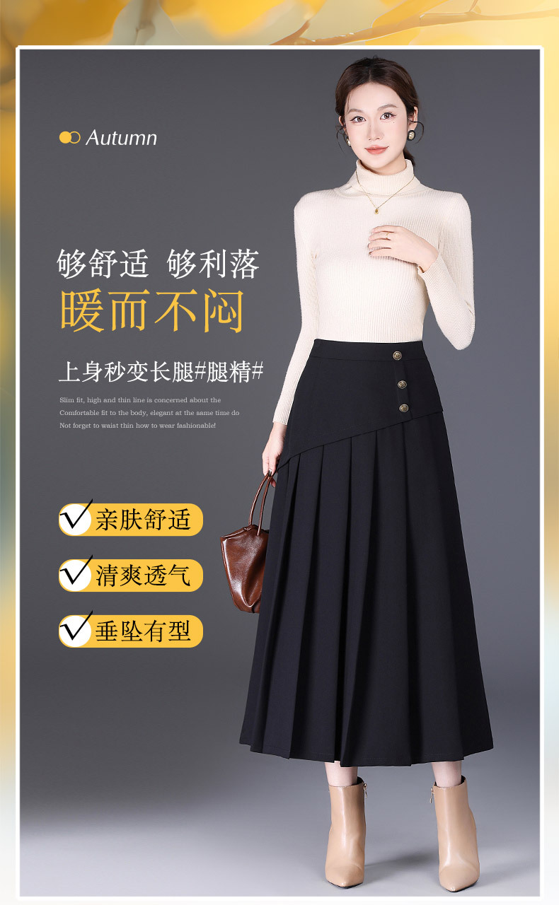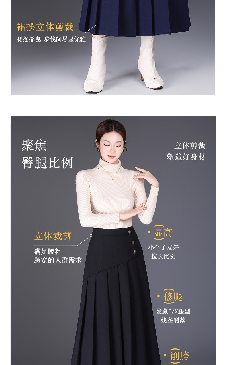 MYX垂坠感百褶大摆裙通勤修身A字裙2025年秋季新款显瘦高腰半身裙