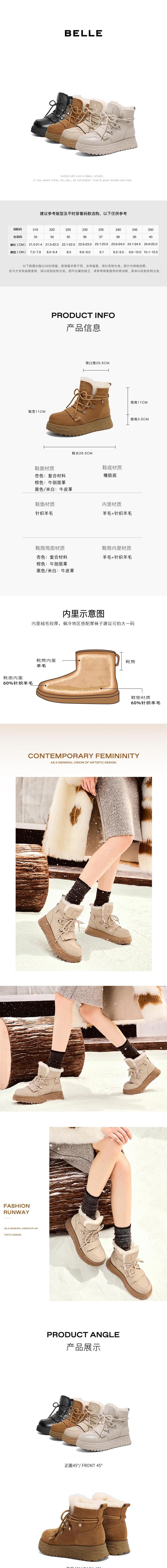 Belle百丽 女保暖加绒短靴 D1W1DDD4