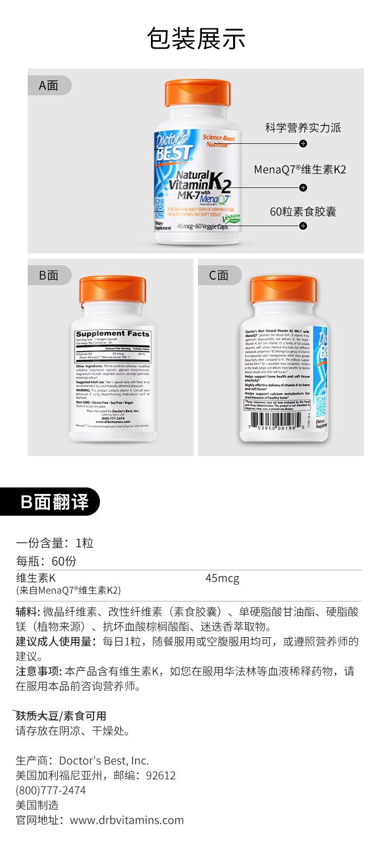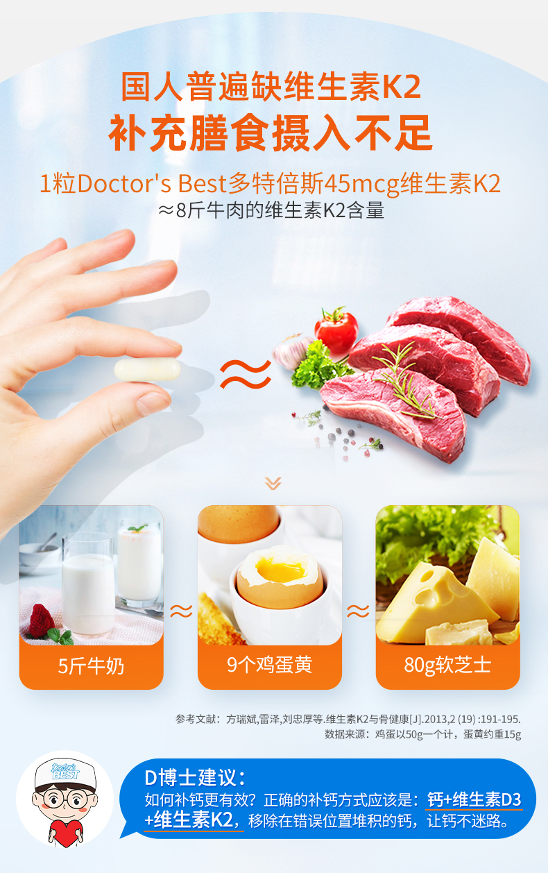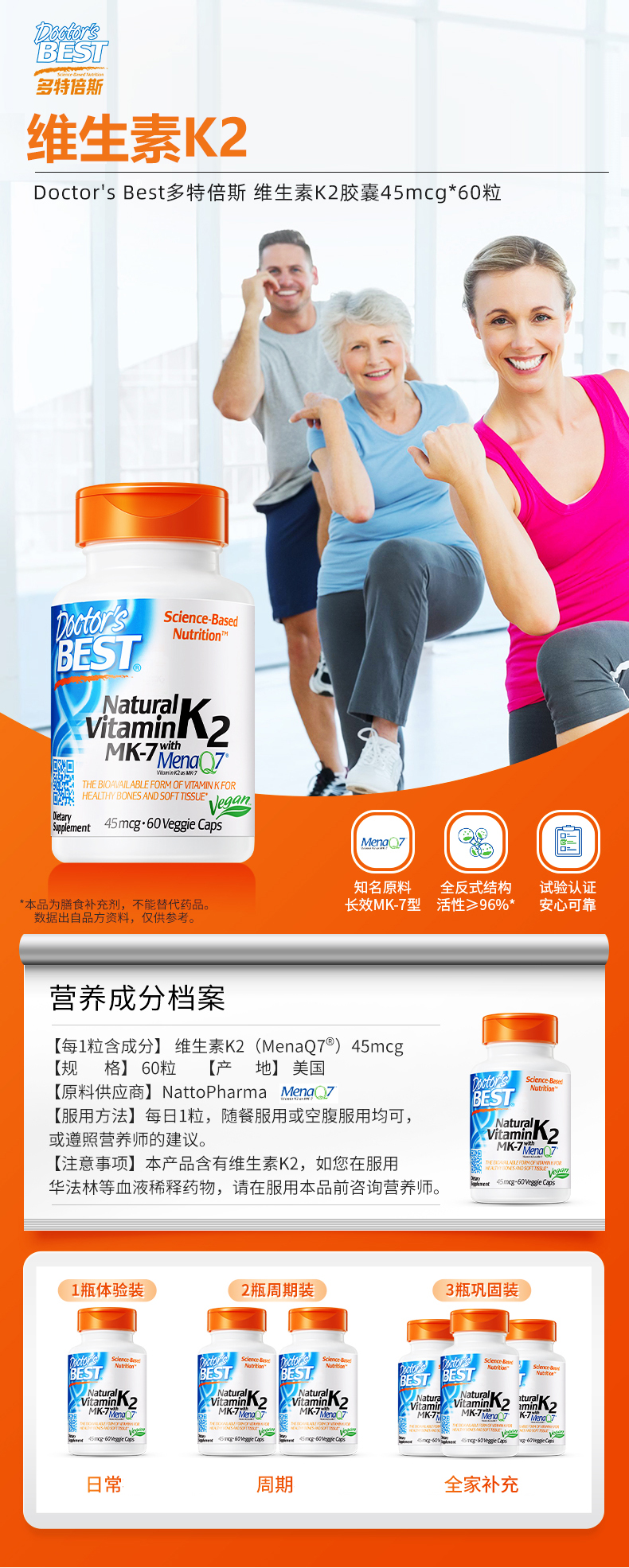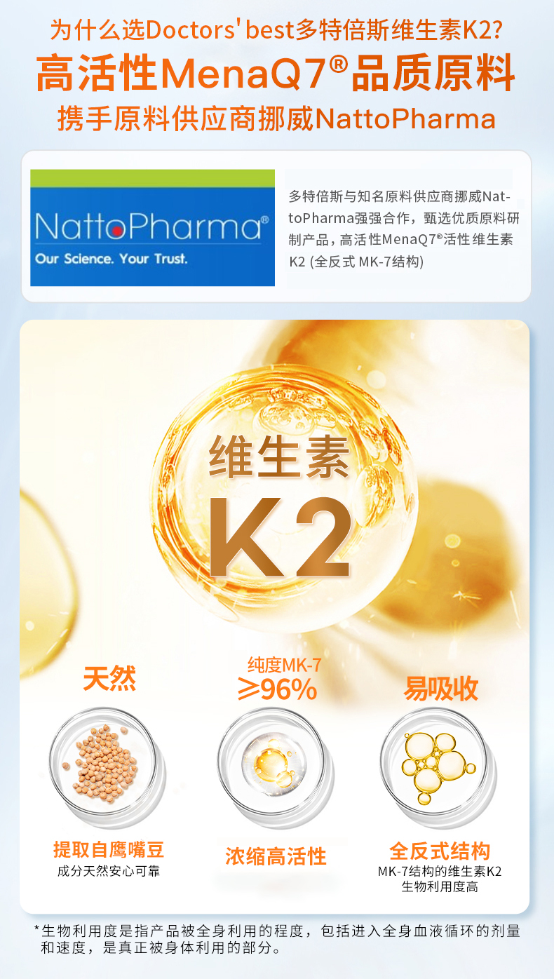 金达威Doctor's Best多特倍斯维生素K2素食胶囊 45mcg*60粒