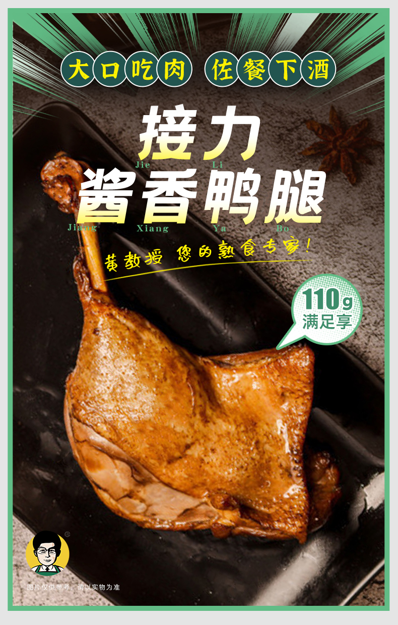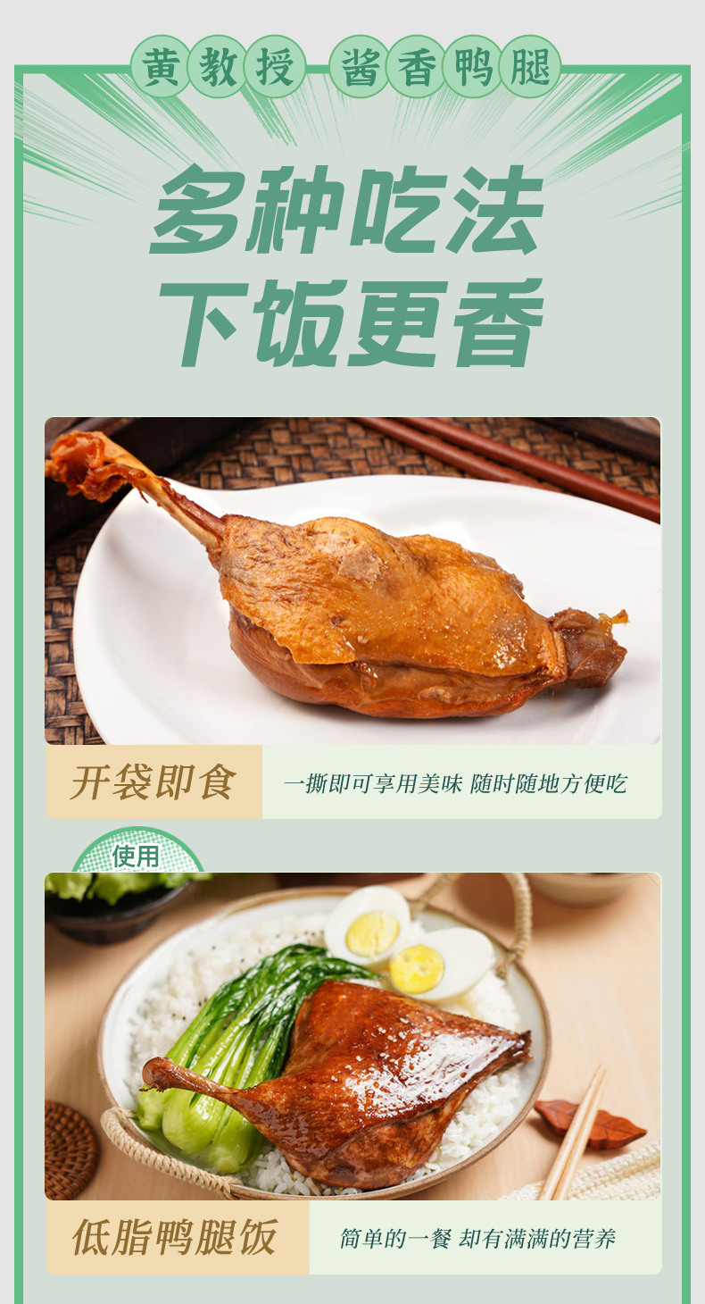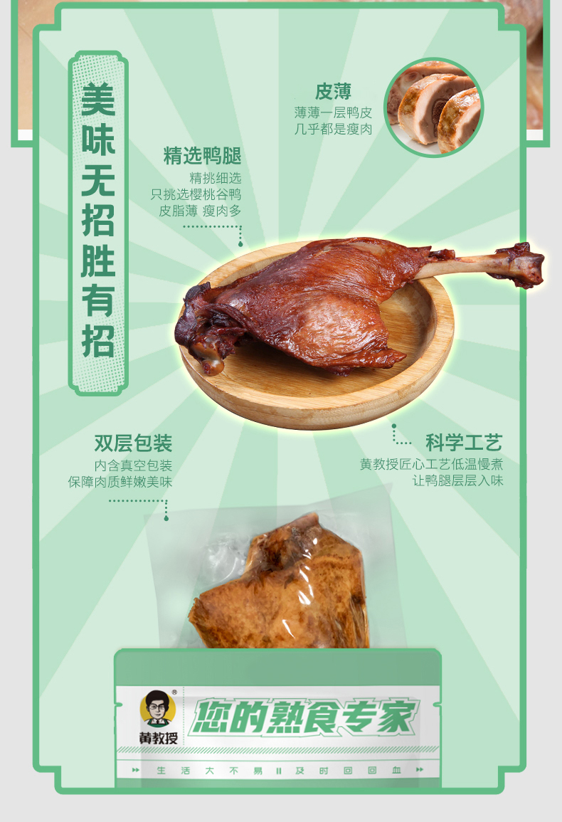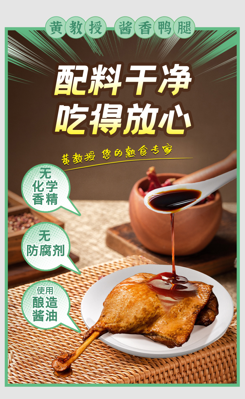 【老卤入味 肉质鲜嫩】黄教授酱香鸭腿 精选鸭腿 科学工艺 肉质鲜嫩 丝丝入味 双层包装 健康安全