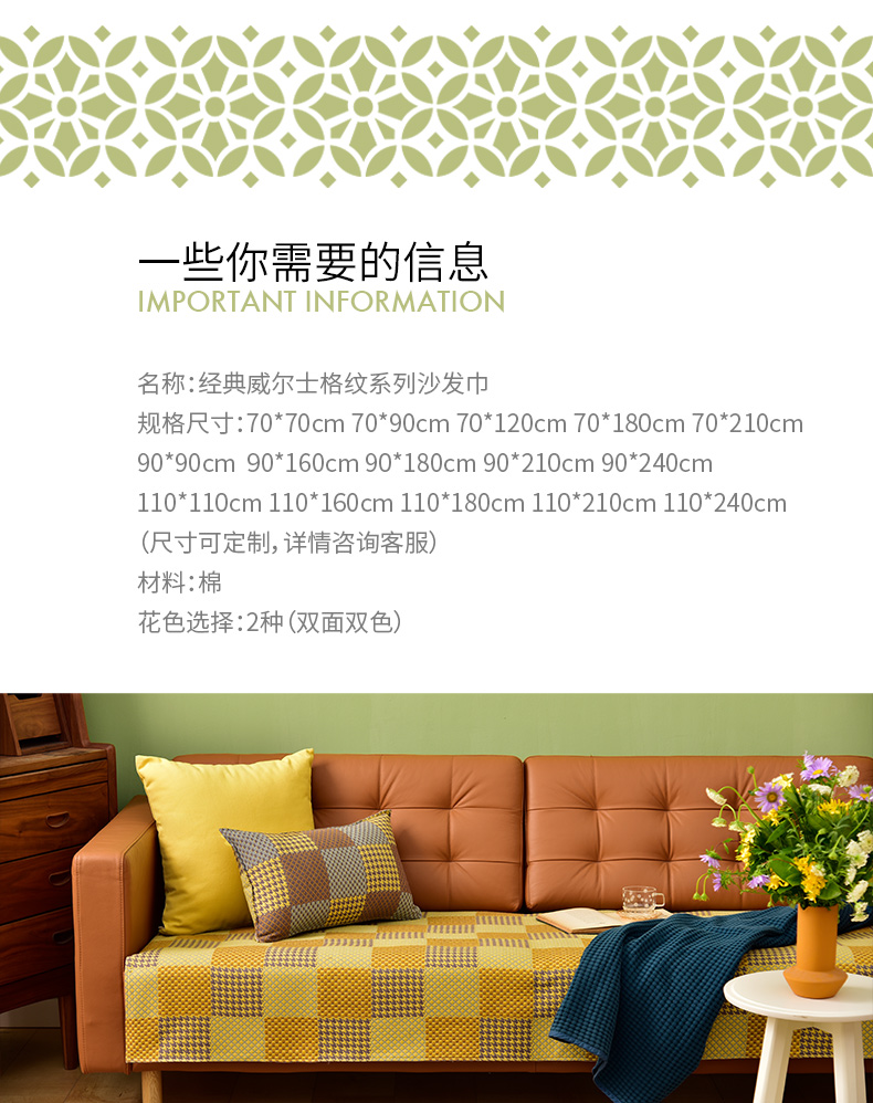 经典威尔士格纹系列沙发巾四季棉沙发巾