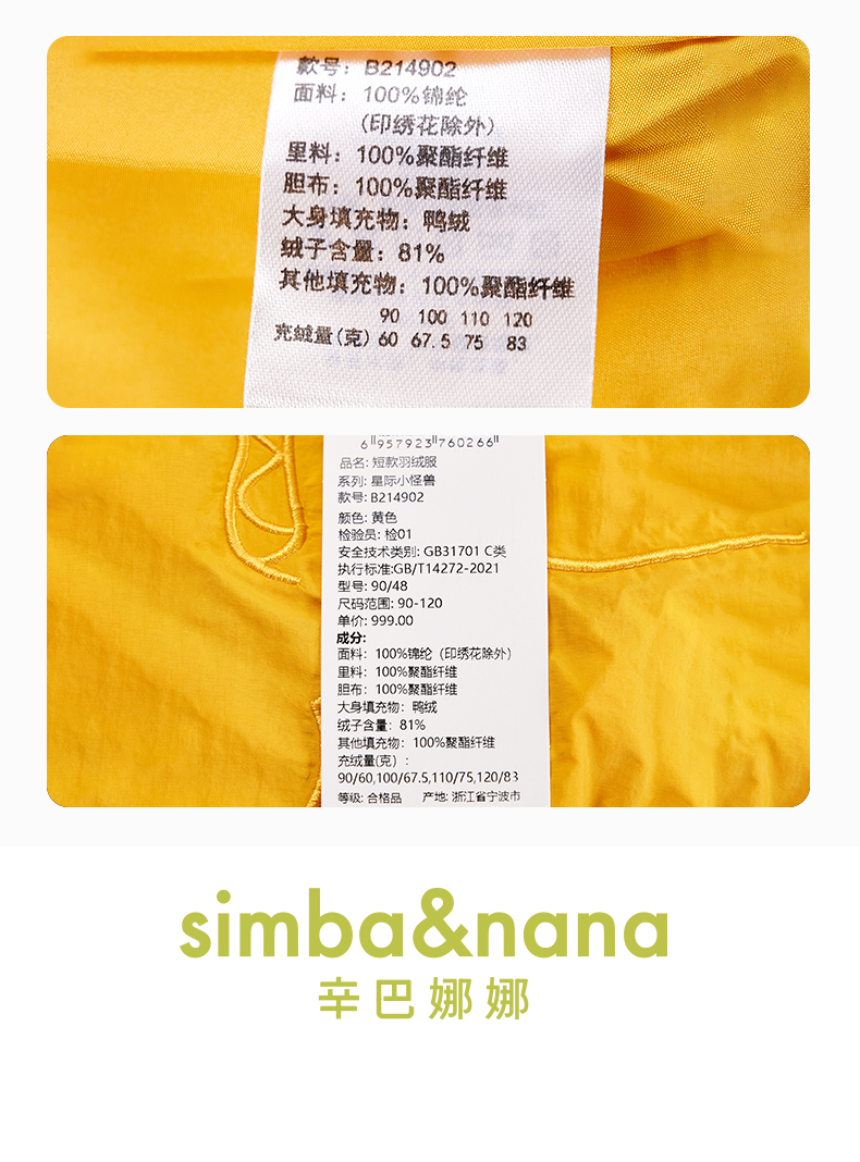 【辛巴娜娜】simbanana男童羽绒服冬装儿童鸭绒小宝宝保暖外套