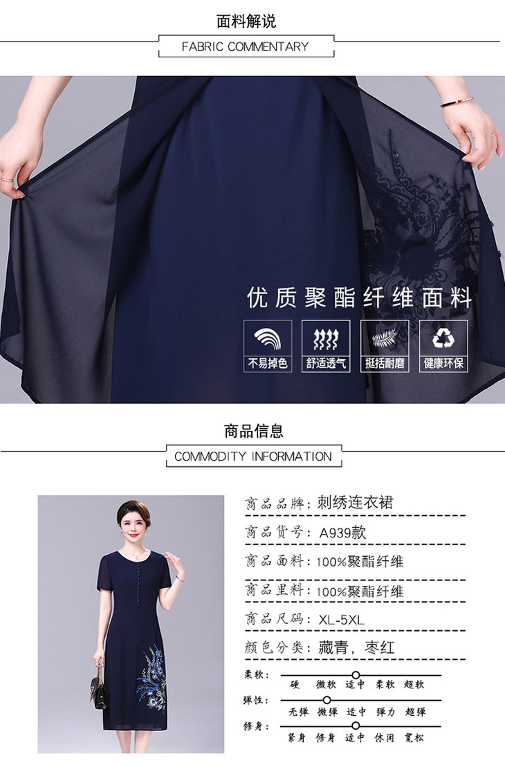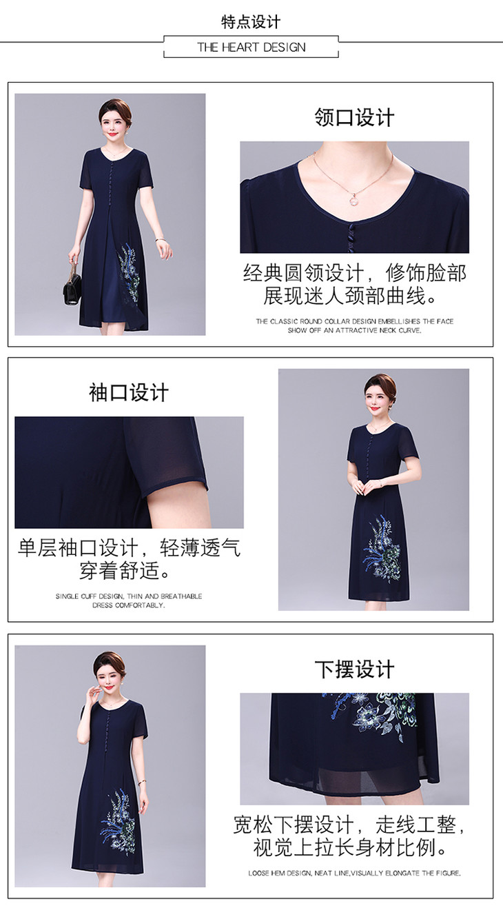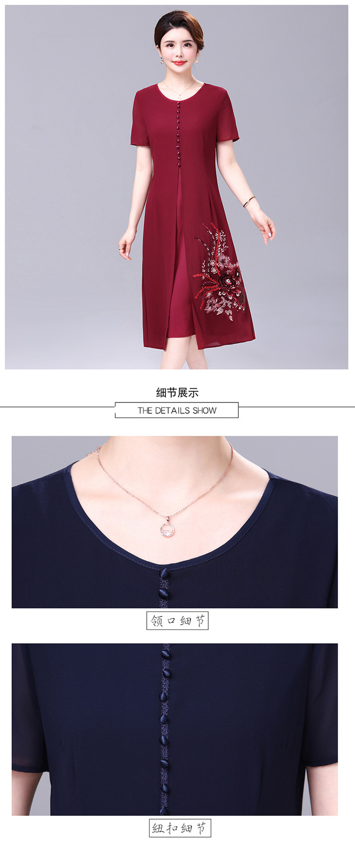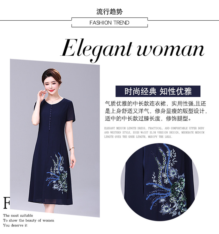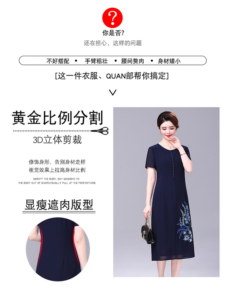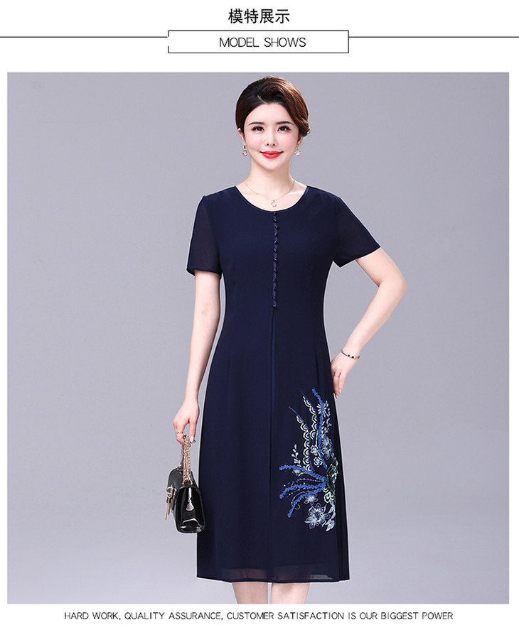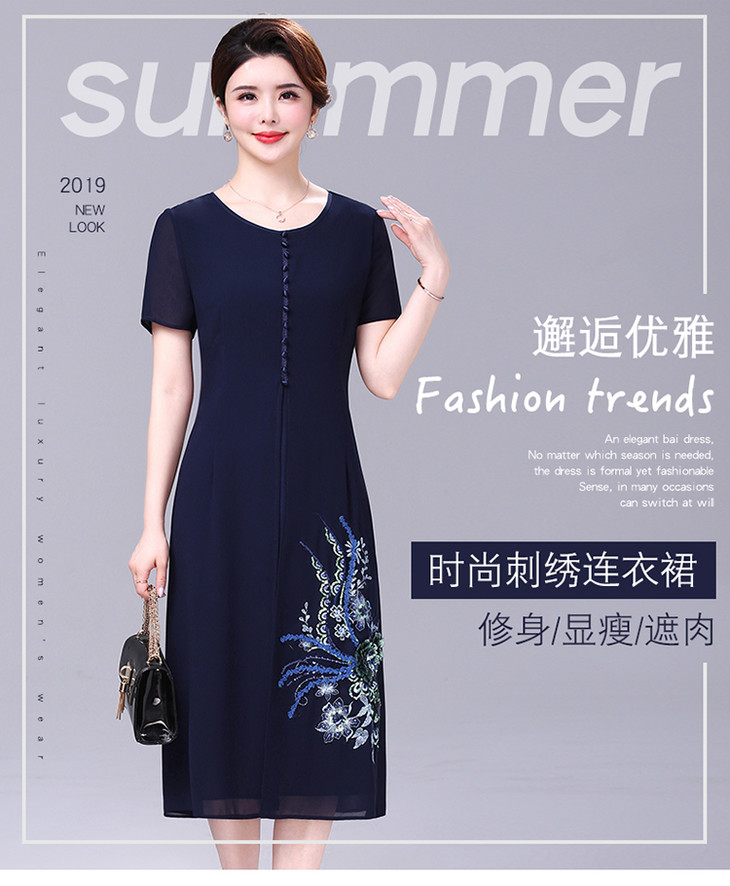 YCE-A054-A939妈妈装过膝连衣裙 阔太太气质高贵长款显瘦裙子